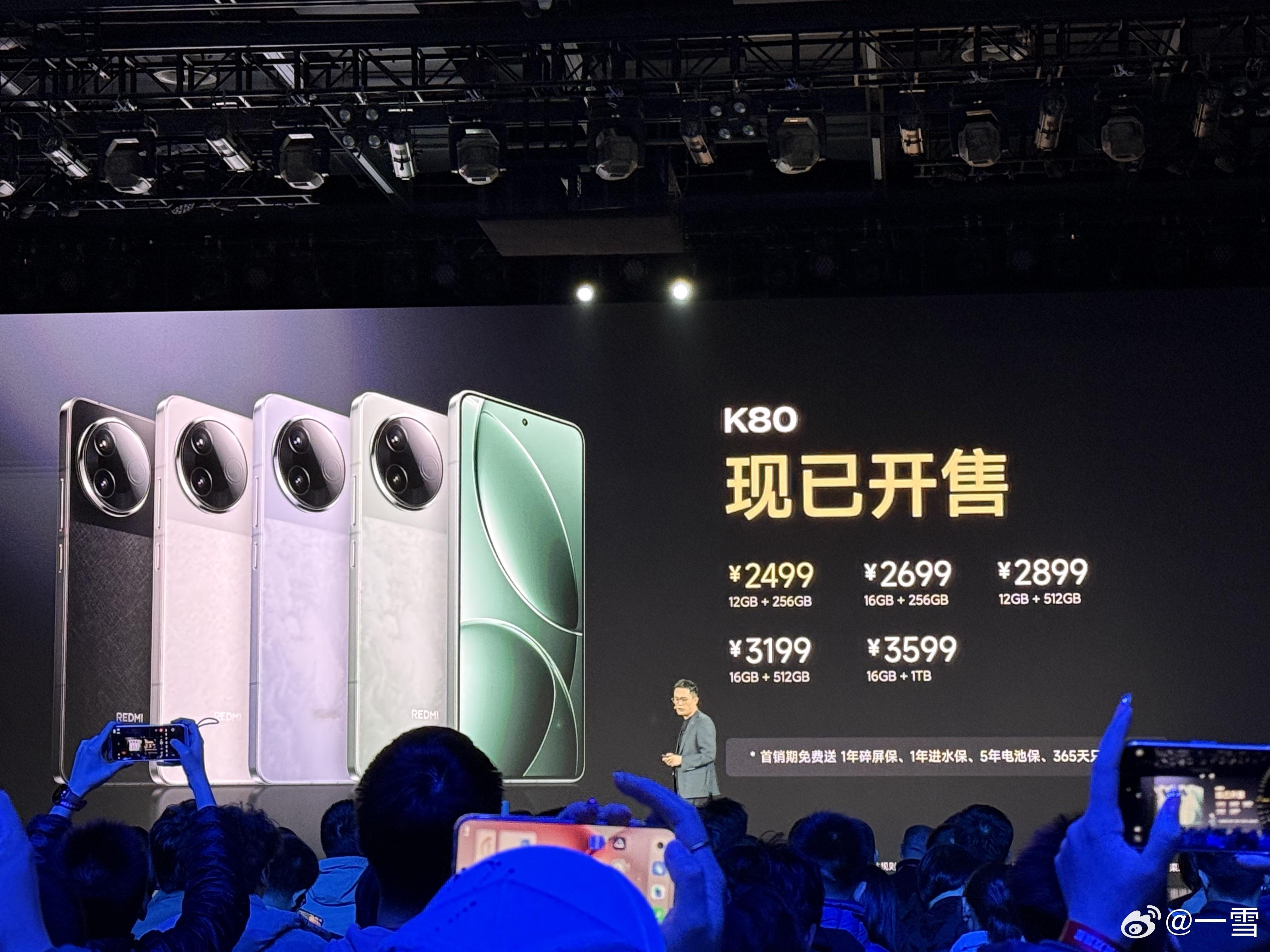 REDMI K80 Pro 售价3699元起,还有一款「K80 Pro 冠军版」,售价4999 元;REDMI K80售价2499元起