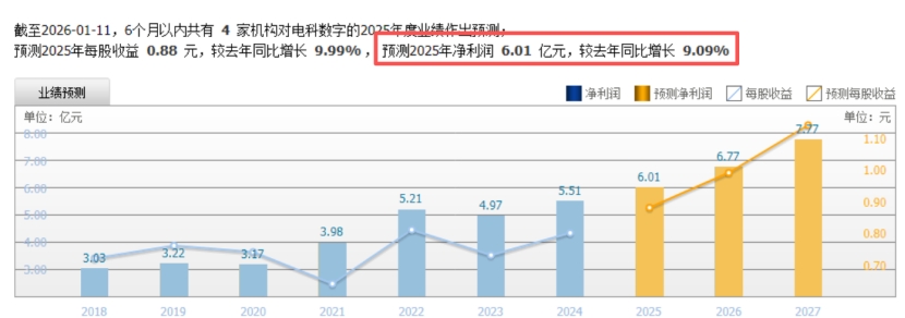 业绩表现:2025年前三季度,公司实现营业收入15.69亿元,同比去年-13.51%;归母净利润2.47亿元,同比去年-19.35%。机构预测,全年净利润5.24亿元,同比增长8.12%。