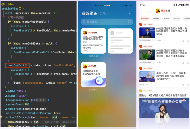工程层面,搜狐新闻充分利用HarmonyOS单框架开发积累,公共基础库元服务与HarmonyOS单框架版本共享,业务功能按需进行定制化实现。例如,平板端通过左右分栏优化阅读体验,而手机端则强化列表渲染性能。这种“技术同源”策略显著降低了开发成本,同时确保了多端一致性。