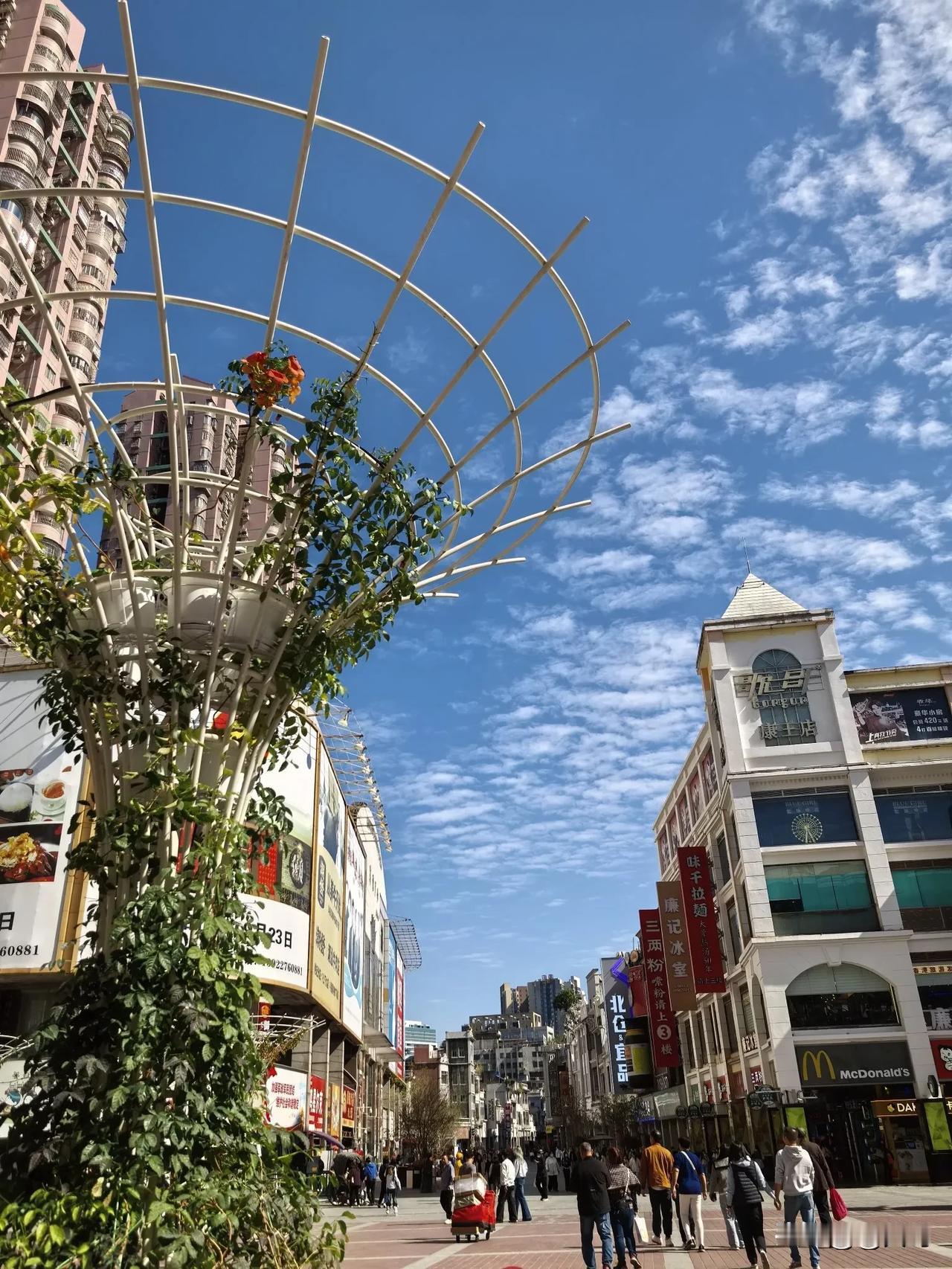 风和日丽下,漫步广州上下九步行街。 头顶那片天湛蓝如洗,云朵似棉,阳光轻洒,满是悠然惬意。 仿佛时间都慢了,沉醉这市井烟火与澄澈蓝天里。 拍摄时间:2024年11月30日。 图片素材;手机自行随拍。