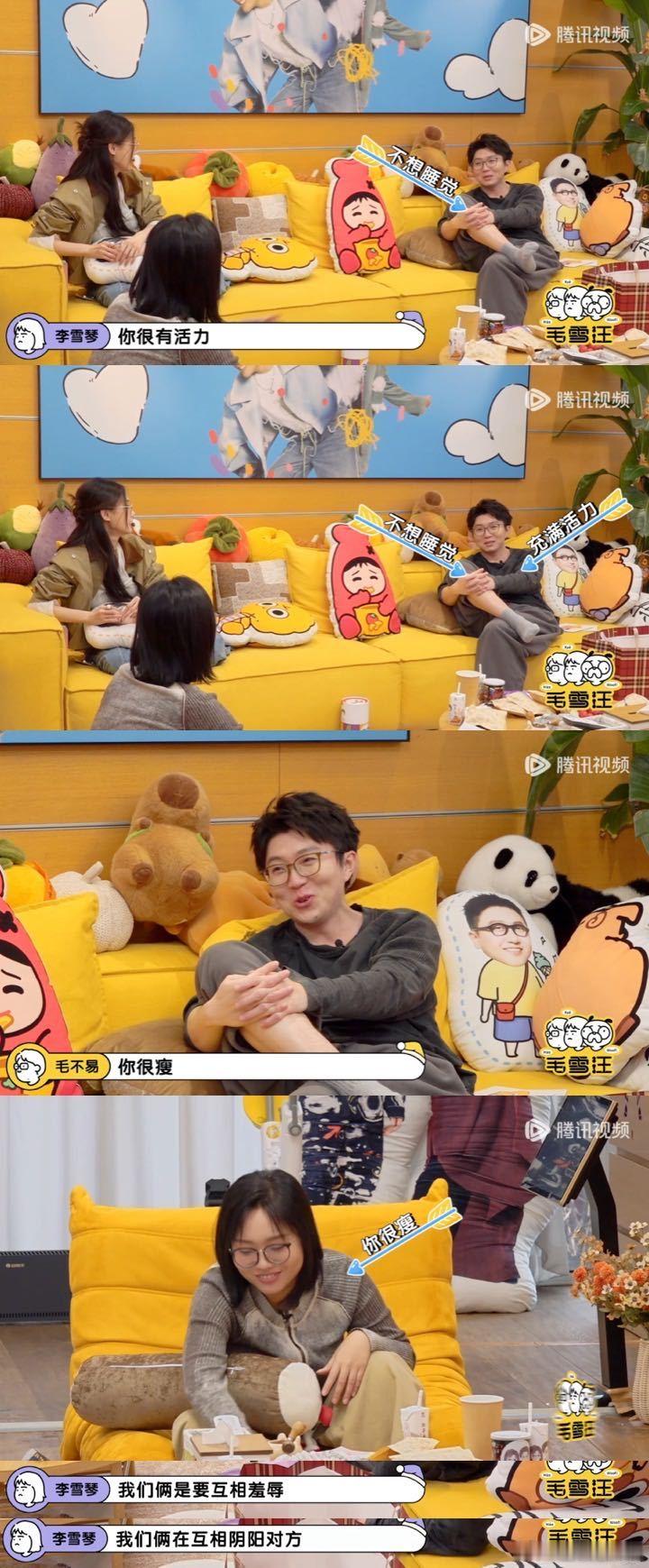 毛不易李雪琴舔了舔嘴能把自己毒死 毛不易和李雪琴这对活宝,听完《水知道答案》的苹果实验,友谊的画风突变。从互相夸赞到互相“攻击”,“你精神饱满”与“你很瘦”的交锋,尽显好友间独特的“欠欠”情谊。