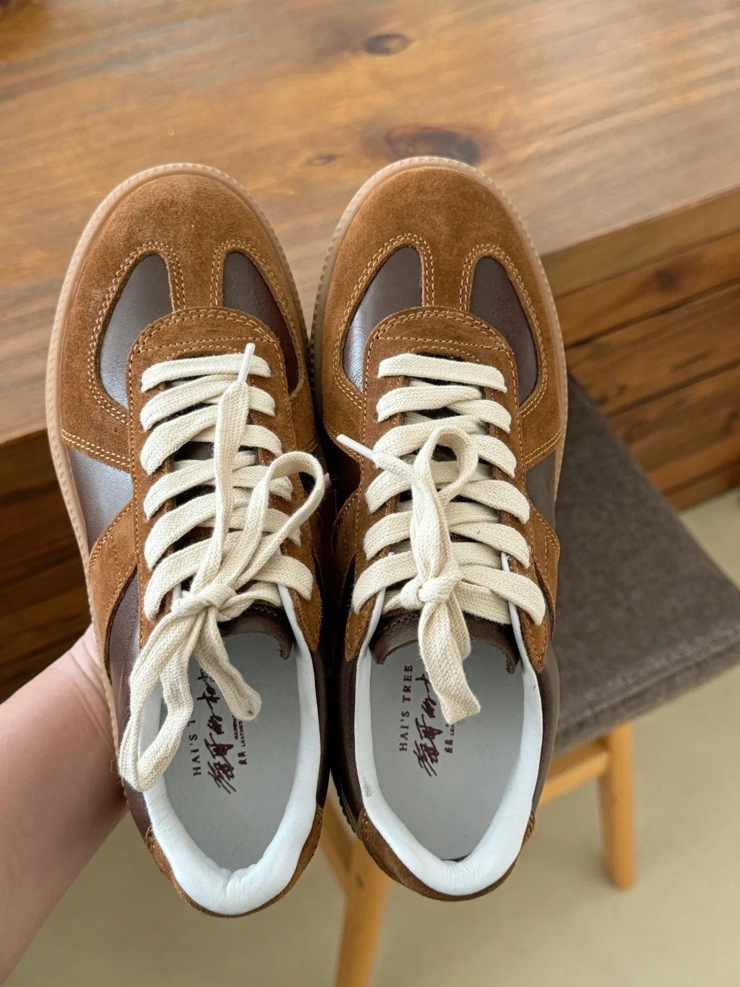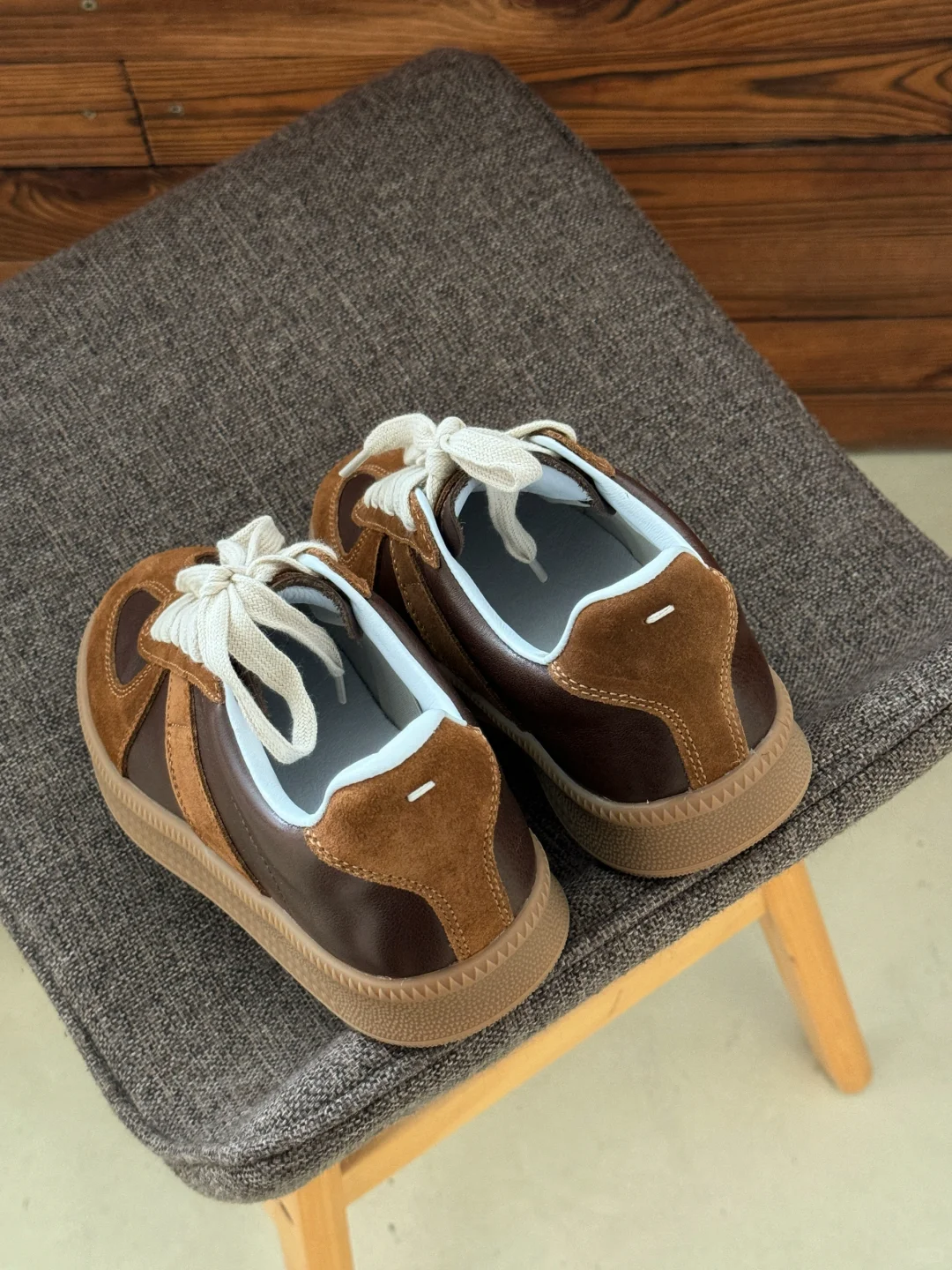 - 经典复古的德训鞋型 里外全牛皮材质 上脚舒适又随性! 3.5cm加厚底 👟 不仅增高 还有效调整腿部线条比例 小个子也能轻松驾驭😌 满满秋冬氛围的美拉德棕🍂 太适合这个季节穿了!