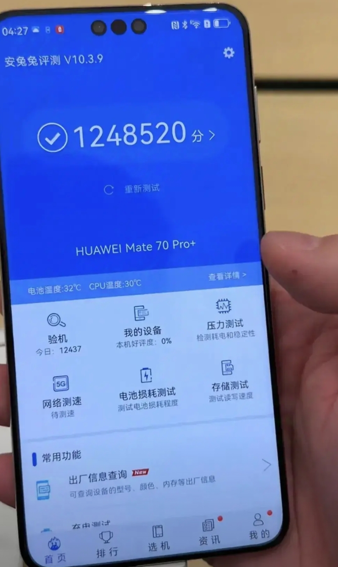 自从华为发布Mate70系列后,沉寂已久的安兔兔跑分大比拼行为又再次兴起,很多博主疯狂测试并转发搭载麒麟9020的Mate70pro+跑分124万出头的结果,然后有人说比K80pro少了195万分,流畅度肯定不行,游戏体验不可能好。