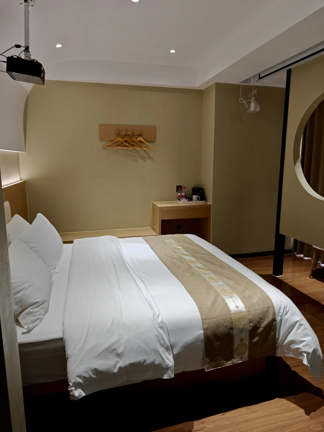 房间有超大屏投影仪,可以躺在床上追剧。洗浴卫生区域是干湿分离的,还有一个大浴缸,现在正值冬季初,泡泡澡也是一种享受,配备了一次性泡澡袋,贴心又卫生。
