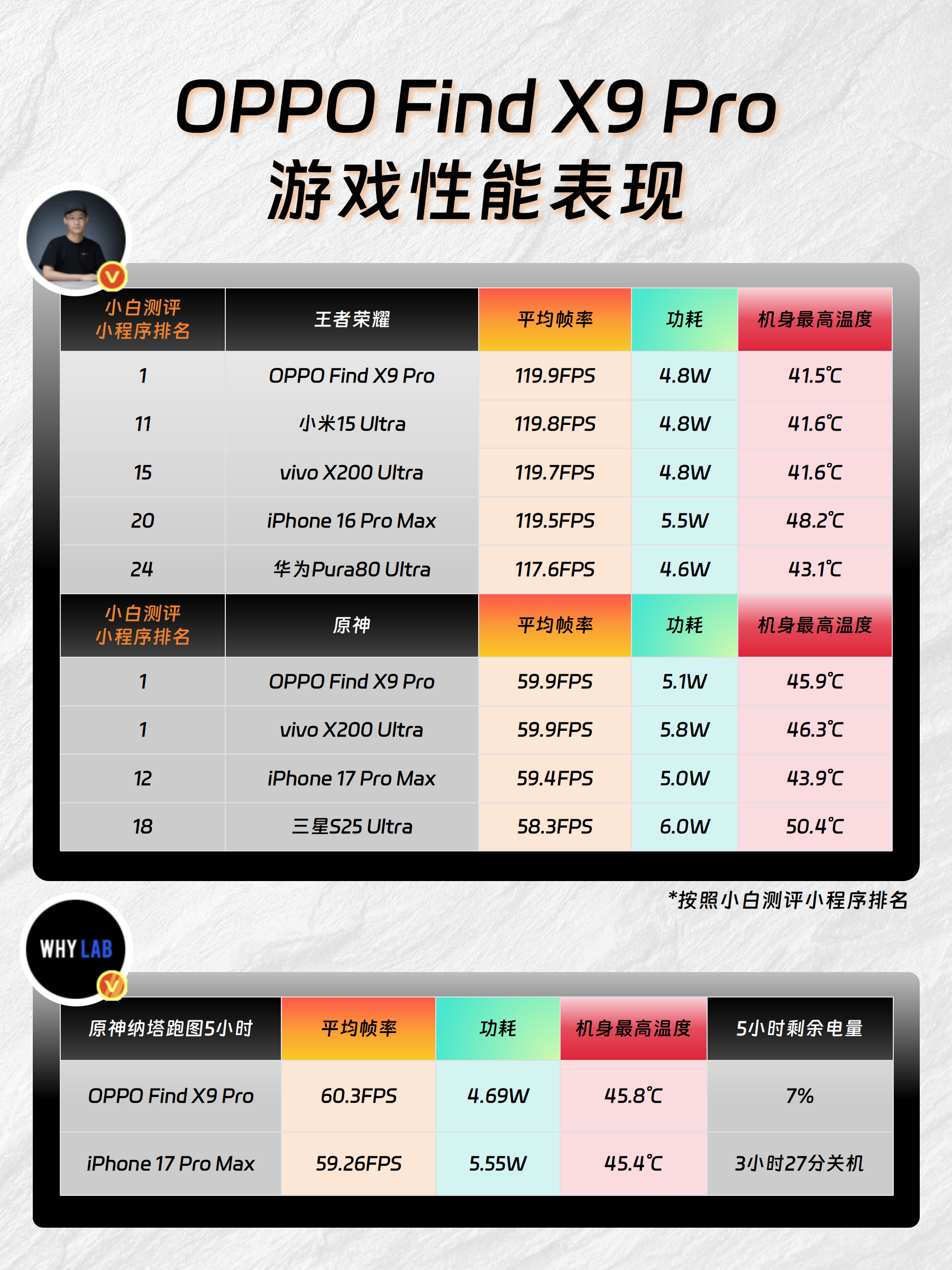 并且从小白测评等知名媒体测试数据来看,Find X9 Pro妥妥的游戏神器,果然是天玑上限看OPPO。