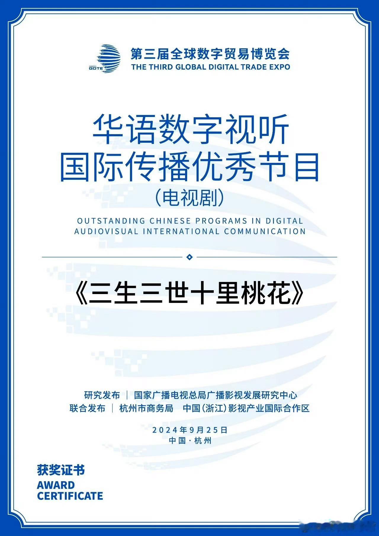 直到今年,《三生三世十里桃花》还在拿华语数字视听国际传播优秀节目的荣誉!