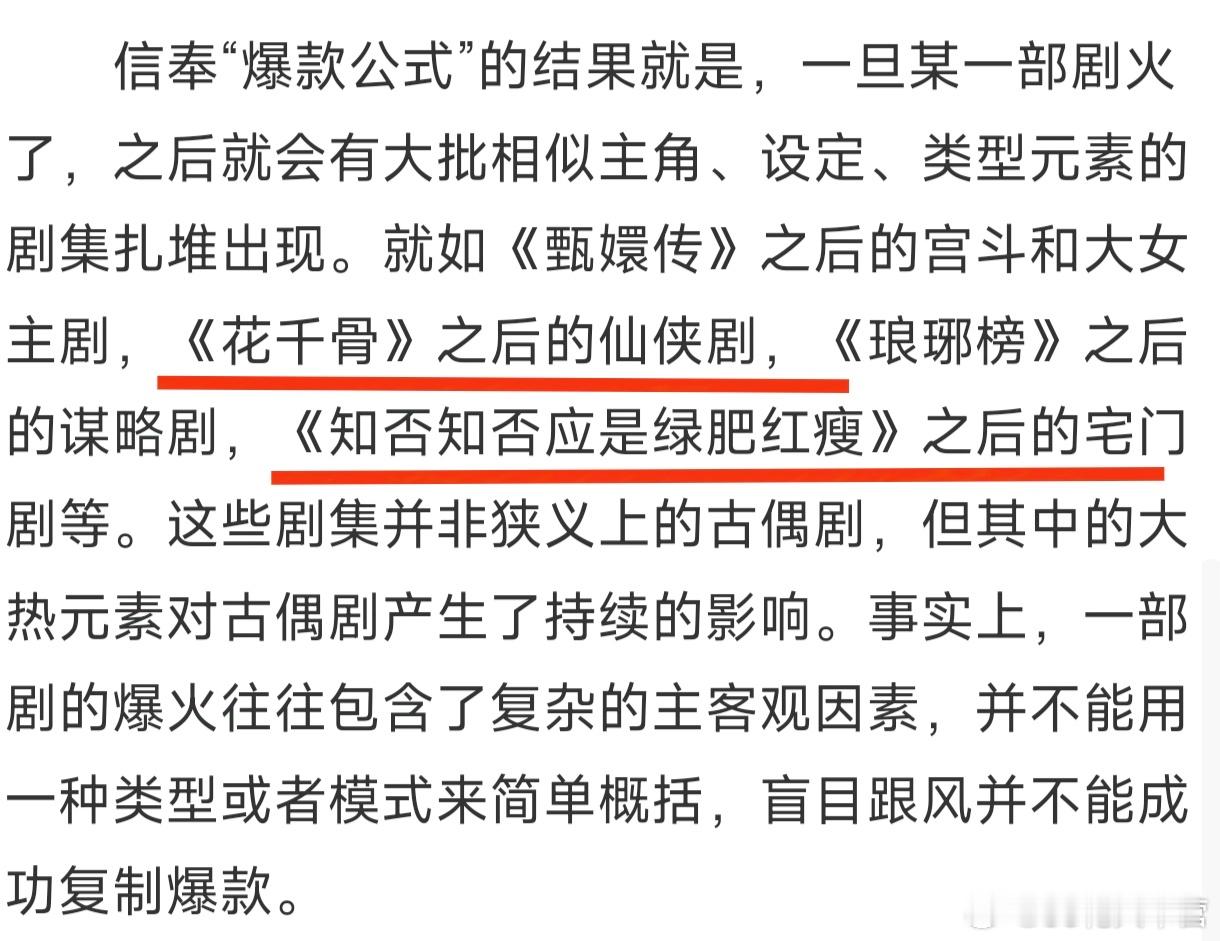 文中举例爆款剧集,《花千骨》《知否知否应是绿肥红瘦》出现!