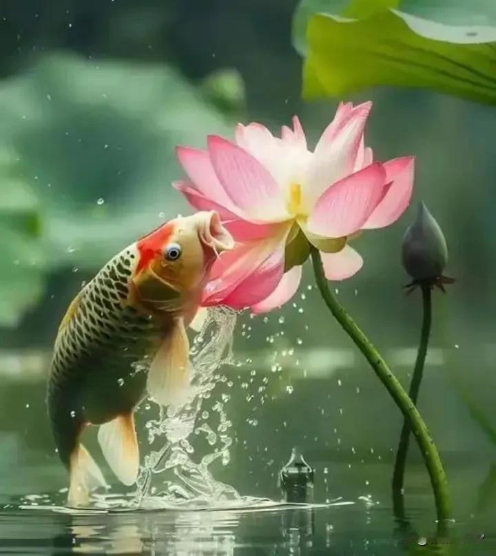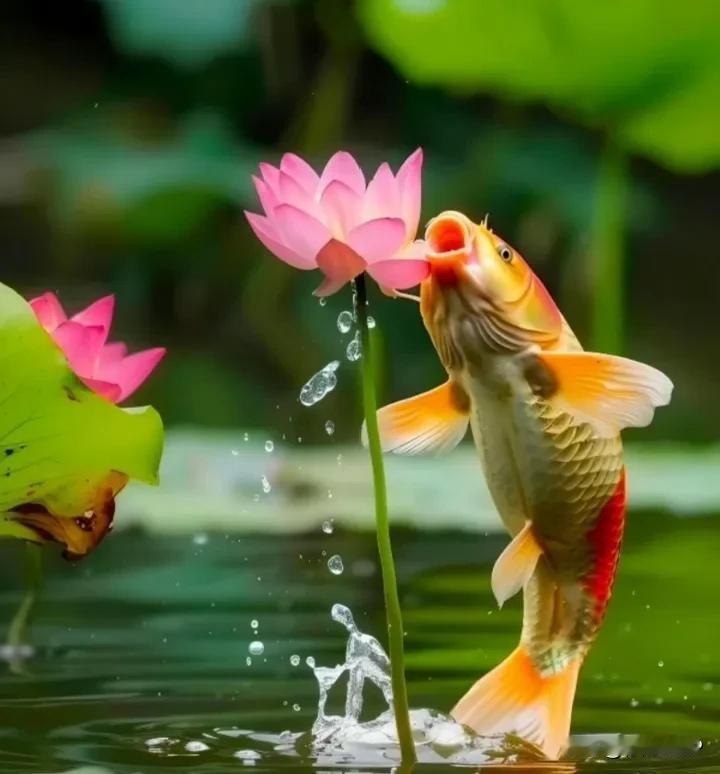 荷塘映红鲤跃欢