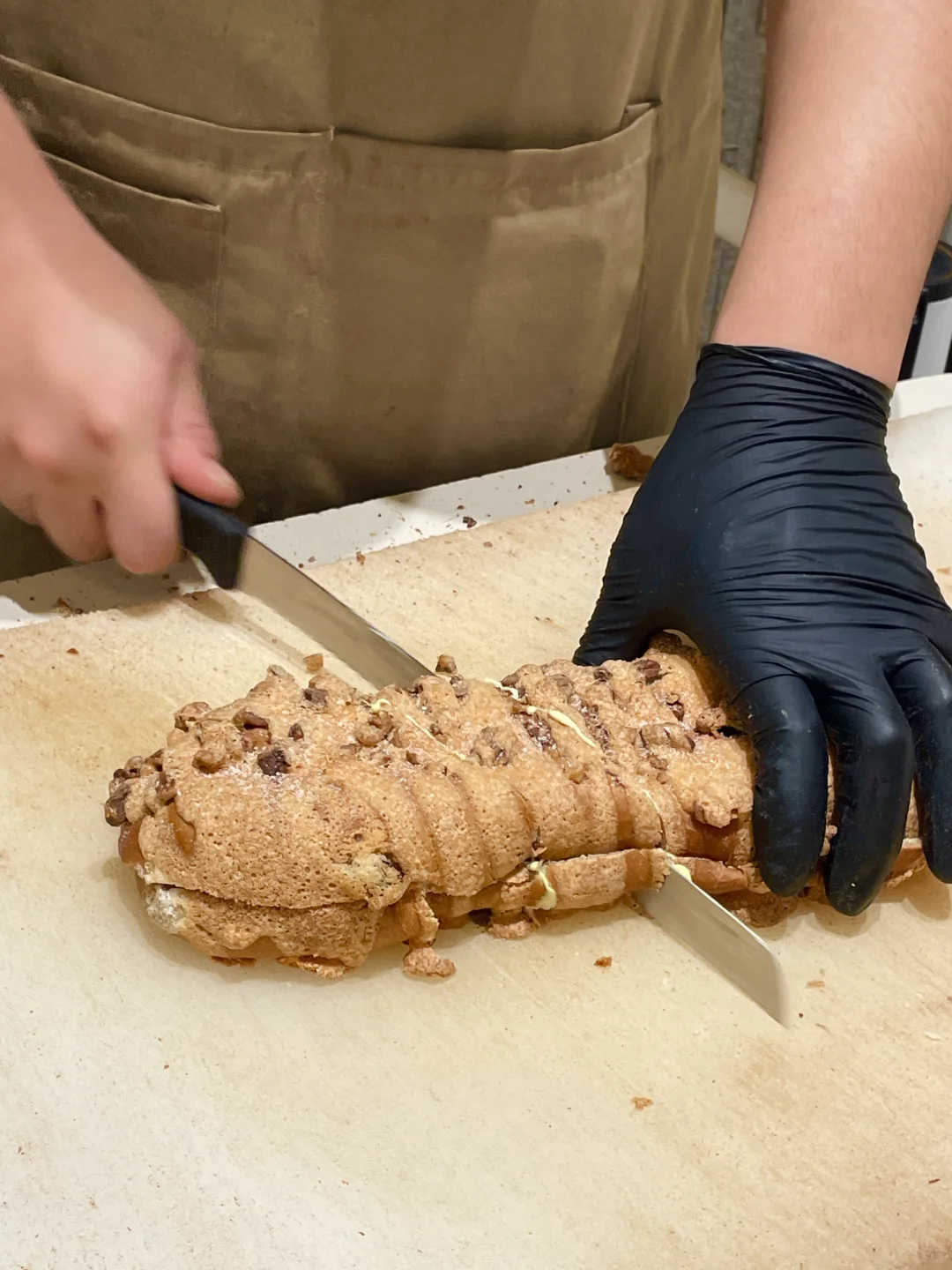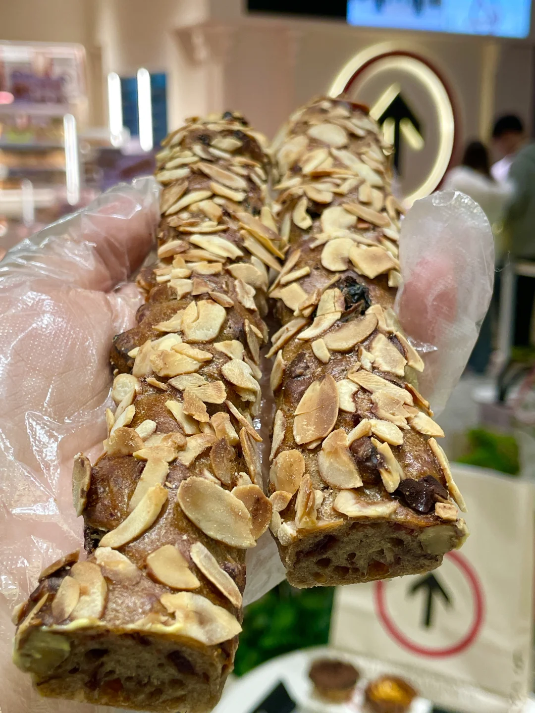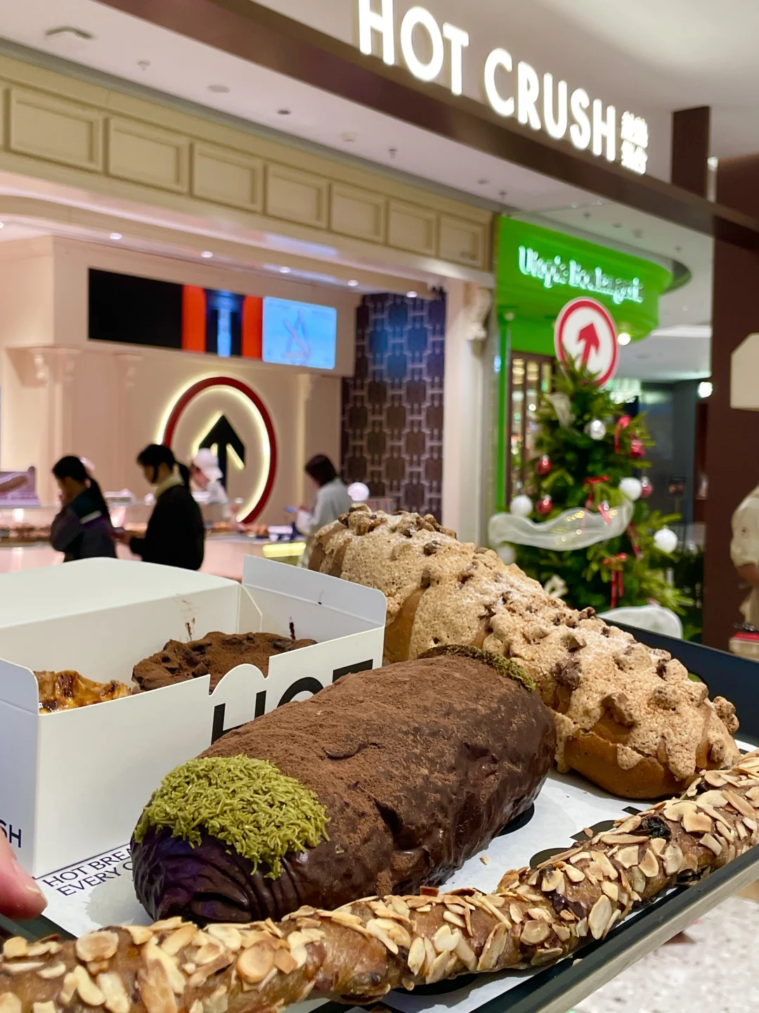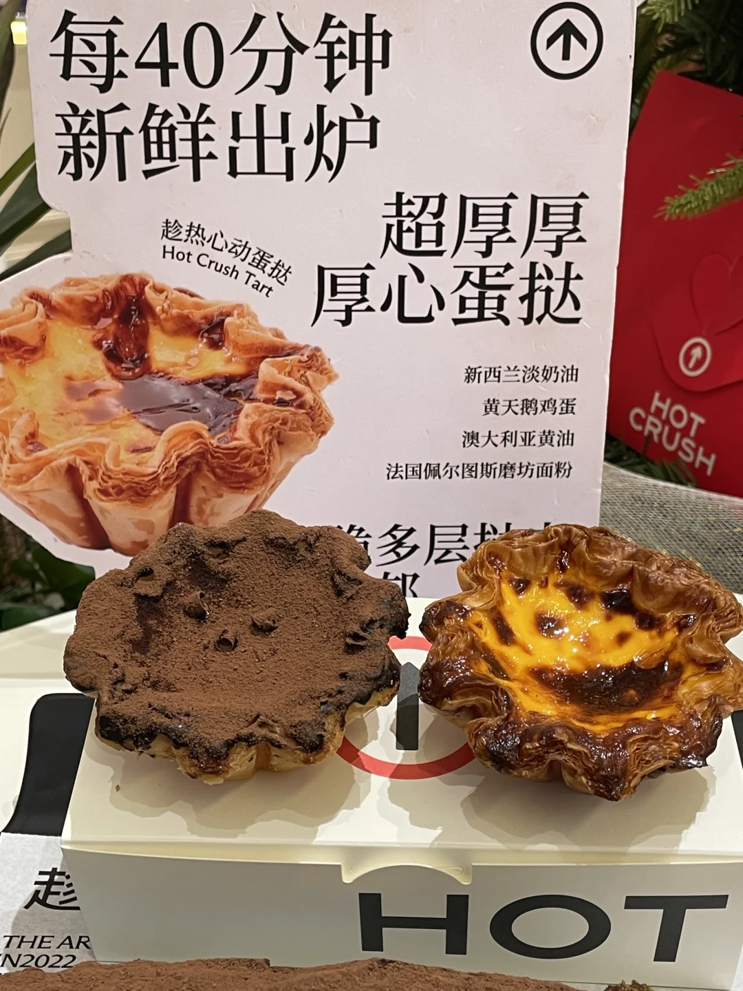 每次逛滨江万象城,总能🈶️新发现。“奉命”来趁热集合囤些面包当第二天的早餐,试吃时又发现一款好吃的面包🥖。 家里人指定我要买趁热心动蛋挞和奶酪核桃马卡龙🧀️,小孩子太喜欢吃了。用黄天鹅鸡蛋做的厚挞心滑嫩香甜,挞皮酥脆可口,每40分钟就新鲜出炉。我爱吃奶酪核桃马卡龙是因为它香浓的奶油乳酪味,再加上上面的核桃也是越嚼越香。 这次的新发现是心动雪吻脏脏包,64%纯脂巧克力🍫➕榛子可可酱🌰➕新西兰乳酪黄油🧈,吃一口就会被“馋”住!下次来囤货,我也会毫无犹豫地买一个。