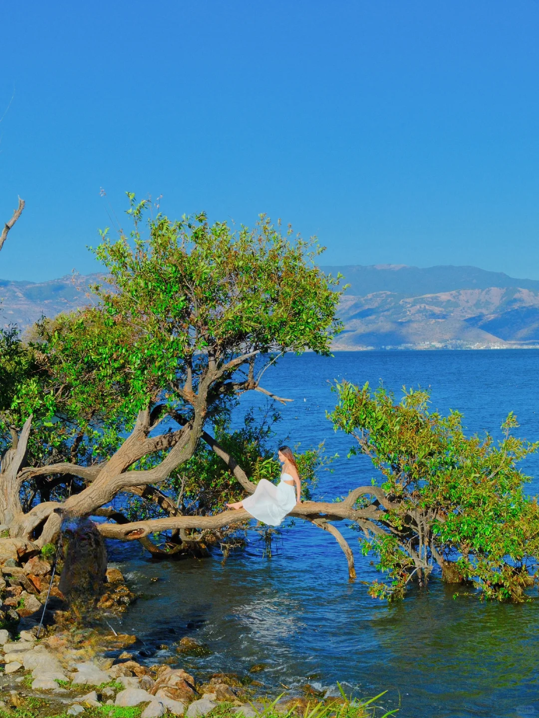 水里的一颗孤独的树很适合拍照打卡人少,s湾也好看