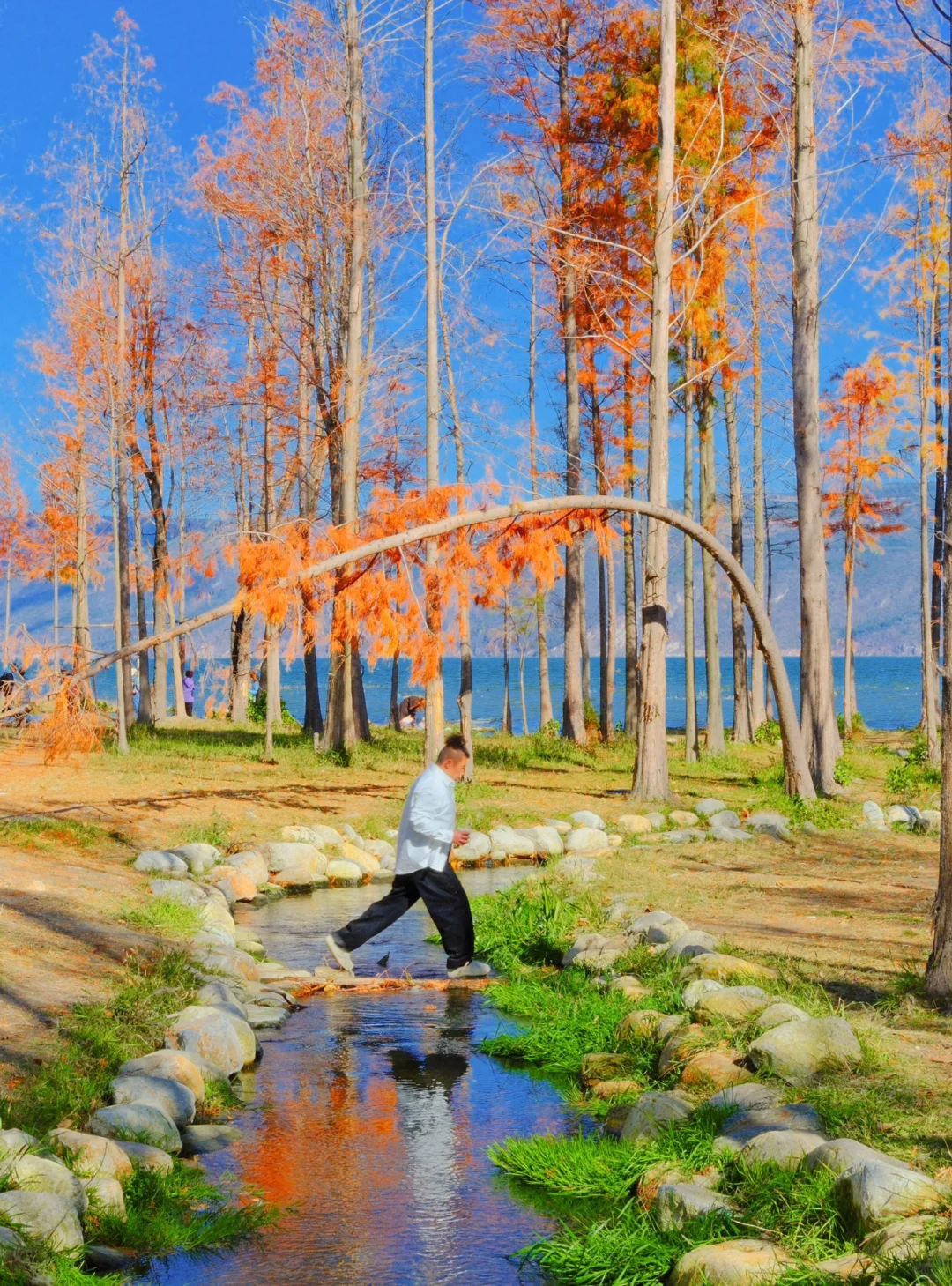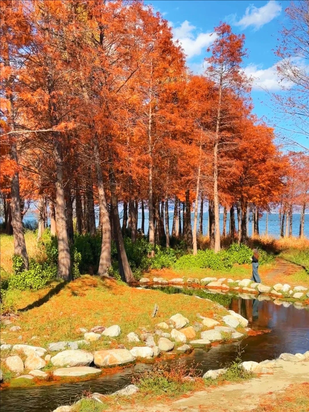 宝藏S弯道和树林秘境河流现在醉佳观赏时间,红水杉林,溪流,洱海结合超美人少景美好出片