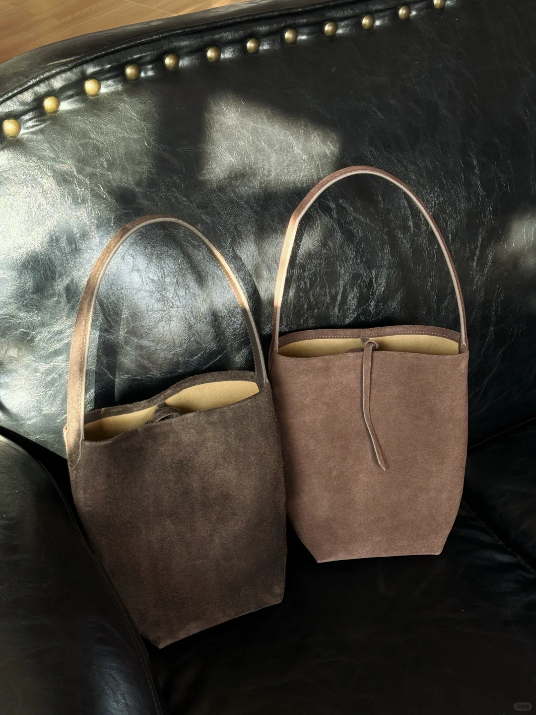 - 秋冬氛围感十足的水桶包 采用优质意大利进口牛绒皮🇮🇹 表面有微微绒感 细腻柔软又丝滑 真皮材质空包呈现自然垂坠形态 自带慵懒松弛感🍂 高级复古的落叶棕 搭配一整个秋冬~