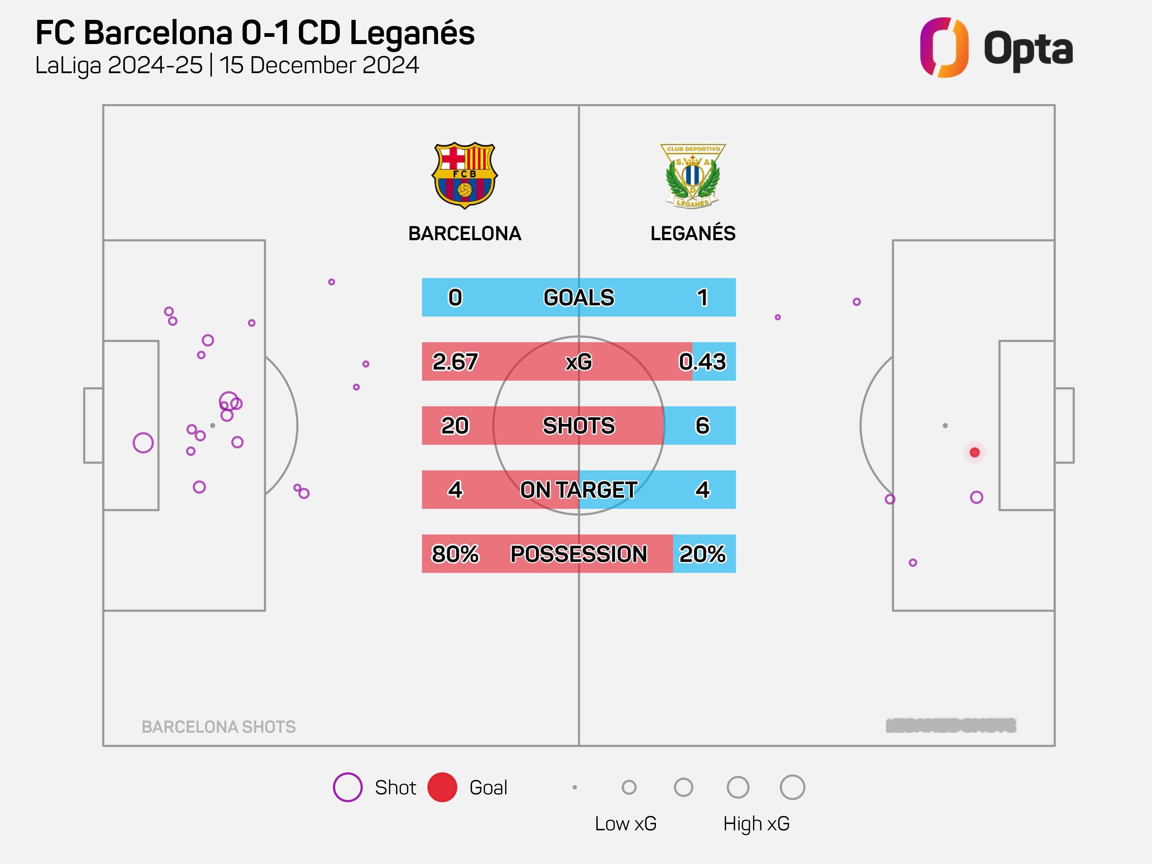 巴萨主场0-1莱加内斯,主场遭遇两连败。