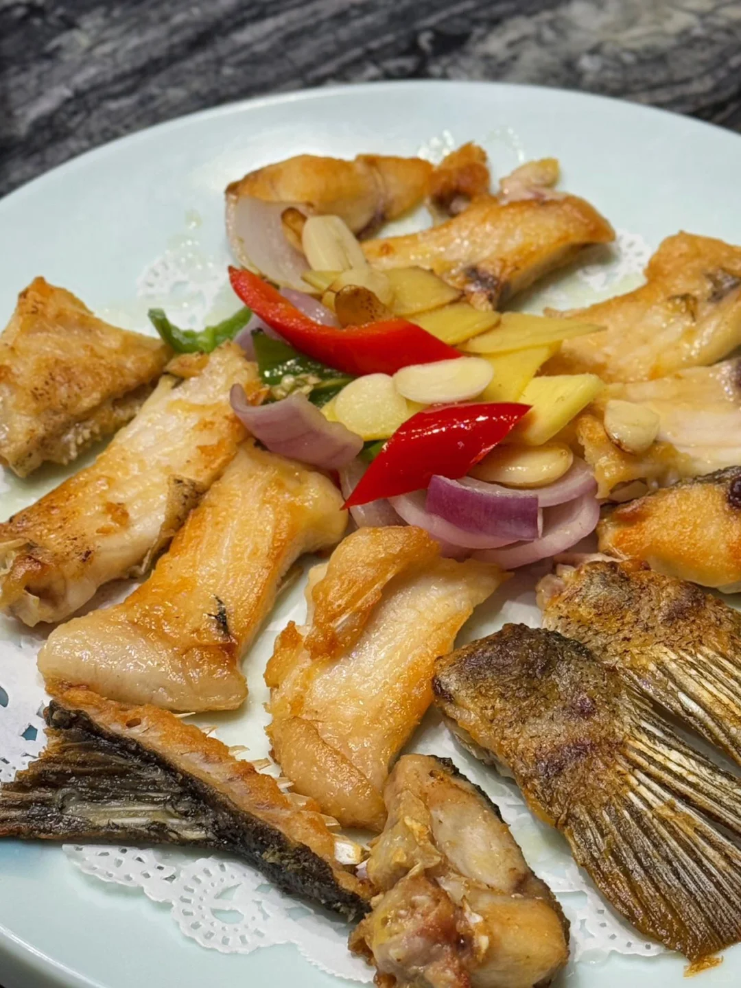 秋冬季正是禾虫肥美的时候 朋友一开始是拒绝的 一吃就停不下来了 生炒完全可以吃出禾虫本来的鲜味 个人感觉生炒比蒸蛋更好味呢! - 除了禾虫还要吃这家店的大雁丹桂农场自养的生态鱼 冬天桑拿就最jeng了 鱼片起肉 鱼骨椒盐 摆拍有心思 而且调味适中 焦焦脆脆的 - 鱼头用砂煲煎焗 一开盖 隔壁房间都闻到香味啦 底下的蒜子更是好东西 软软香香的 - 这家店完全不担心车位问题 直接开进来 随便停 满园的九里香花香也是让人心旷神怡啊~~