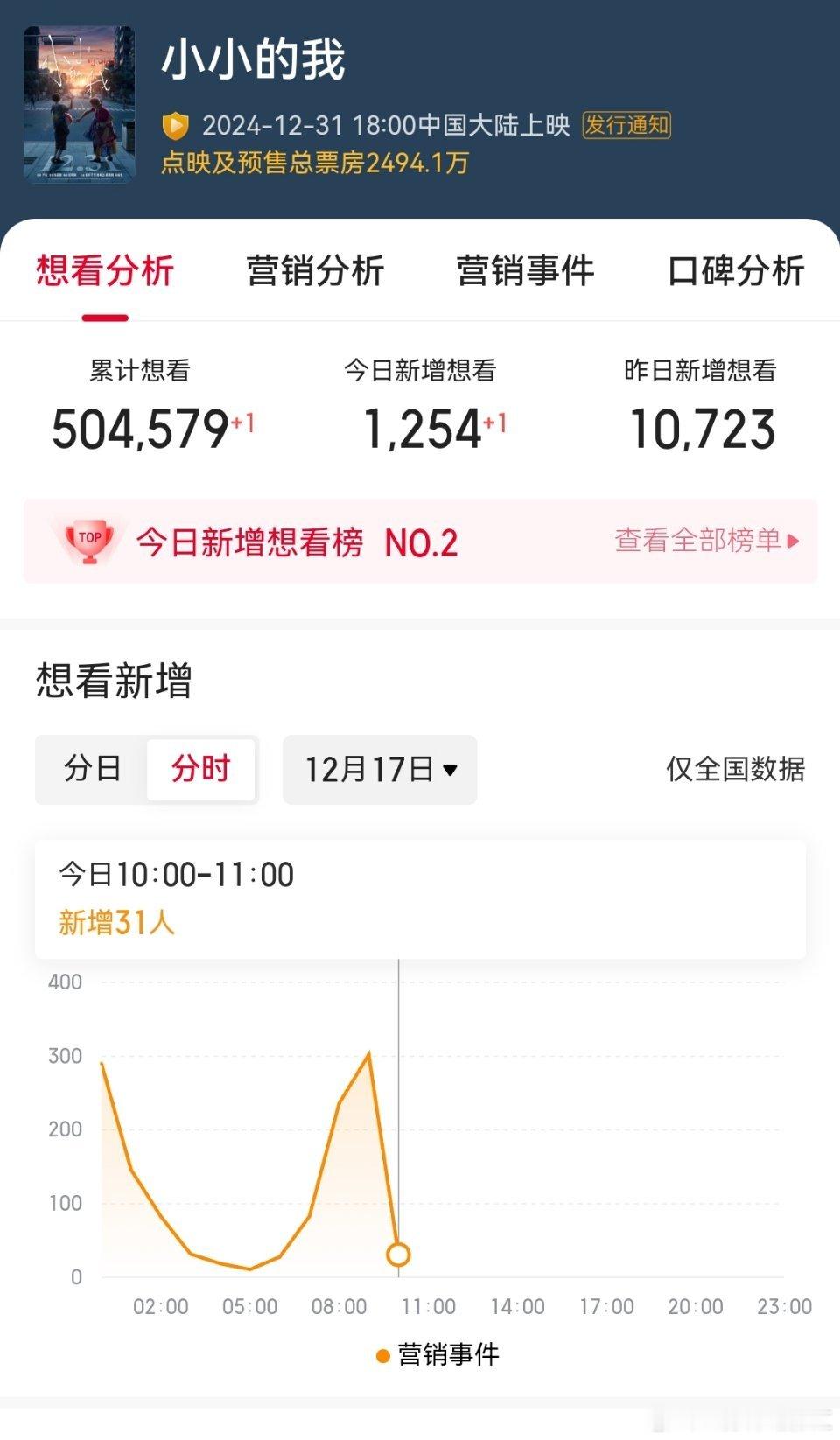 电影小小的我预售破2000万 易烊千玺主演电影《小小的我》想看人数突破50万,票