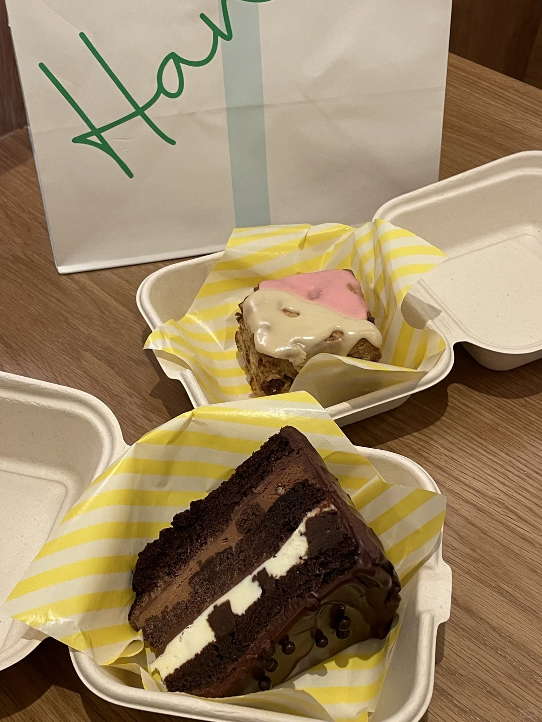 可惜憧憬着米一平替甜点的我期待错了方向。主厨其实是塞尔维亚人,但他偏偏特别爱美式风味,又听说Hani是主厨妈妈的名字,综合种种因素,造就了这家各种带了点巴尔干风情的【美式】【家常】风点心,简而言之不爱吃超甜的不要来。与此同时价格又跟家常八杆子打不着。要说优点大概就是branding很可爱,座位也多,非常适合社交吧……