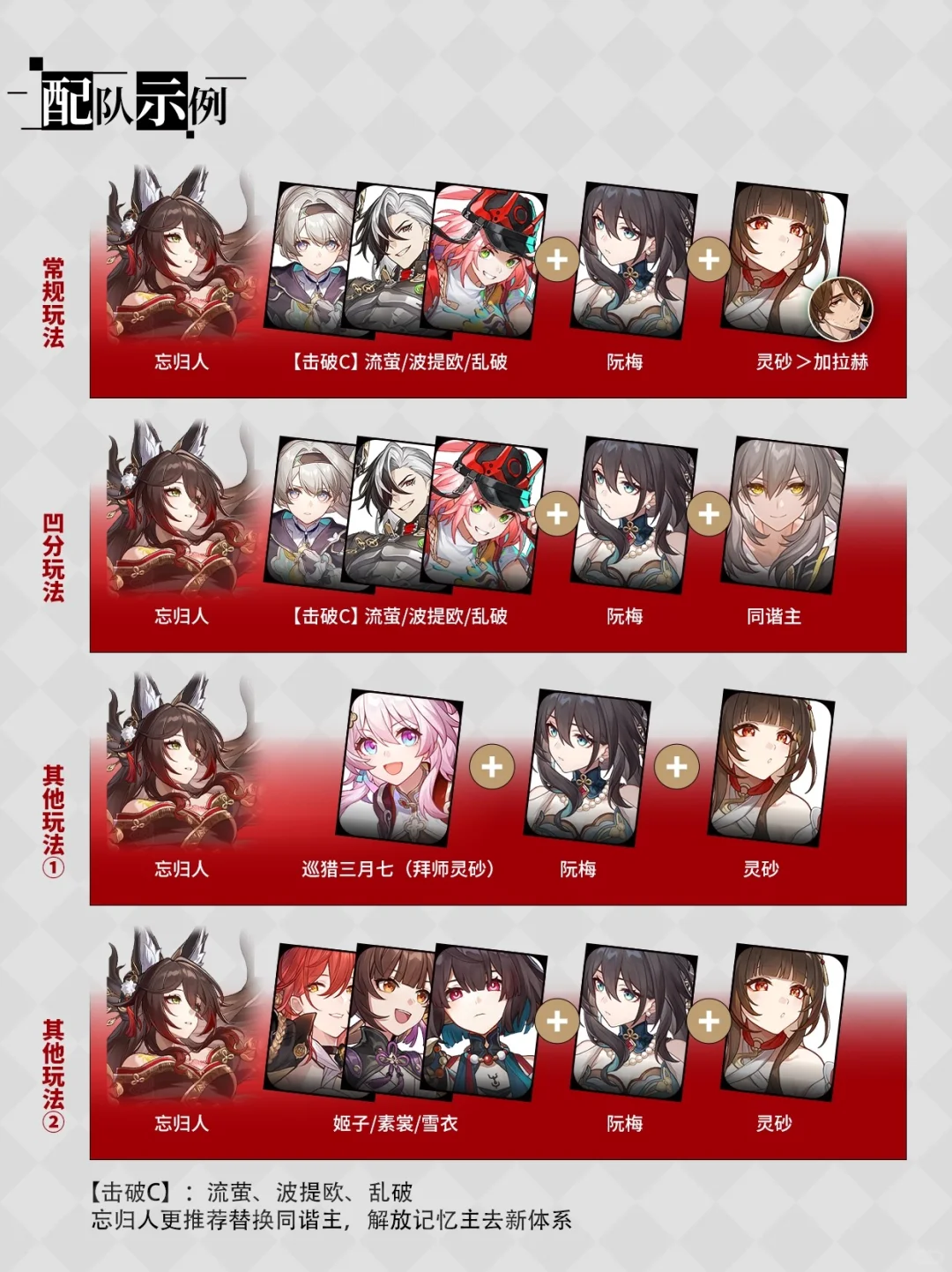 鼹鼠君来喽~ ≖‿≖✧ ▌忘归人材料 | 行迹 | 光锥 | 遗器 | 配队|细节 ▌角色简介: 忘归人是击破队的售后辅助,零魂即完全体。天赋自带超击破和虚韧性,战技还能进一步提供减防和无视属性削韧,推荐想要补强击破队的玩家抽取! *该内容来自创作体验服,以实际上线为准 -------- 「恩公,纵然银河迢递,星汉漫漫,只要彼此挂念,总有重逢之时。」