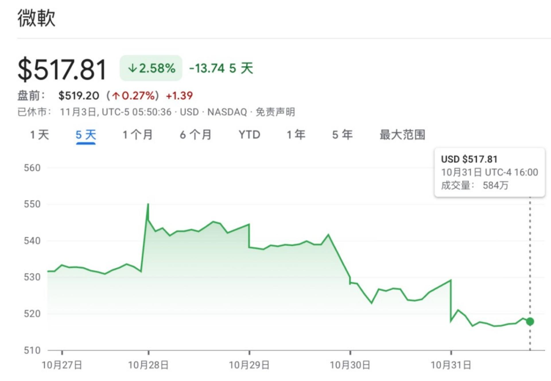 28日当天,微软股价应声上涨20美元。