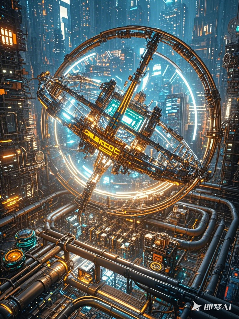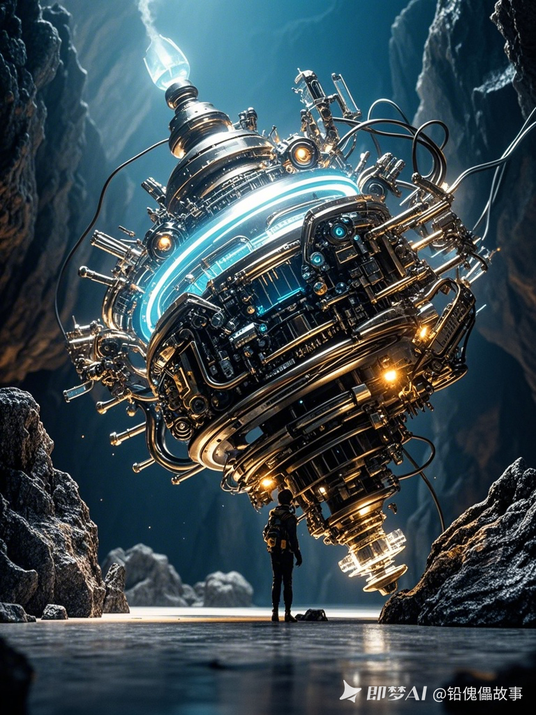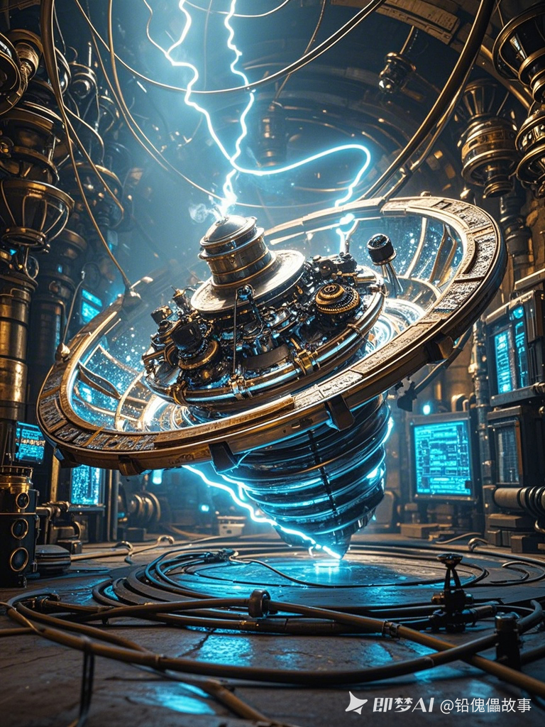 巨大机械陀螺电光闪烁能量外溢AI绘画壁纸头像巨物