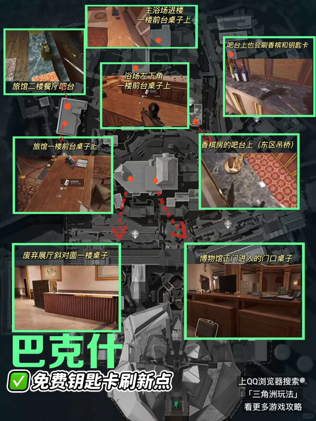 三角洲行动巴克什全8个免费钥匙卡刷新点!