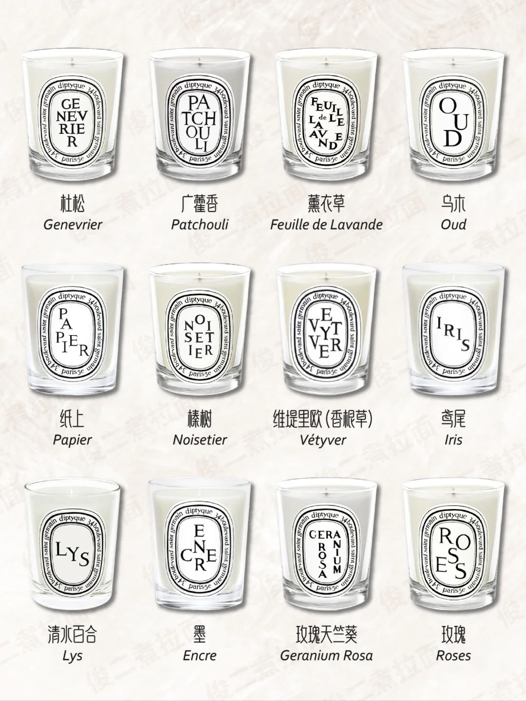 🕯️1963年,他们开始手工制做蜡烛,香薰蜡烛可持续燃烧50-60个小时,因其高品质与优雅的香味,很快他们的产品便闻名世界,成为香氛蜡烛界的翘楚,由此得到一众名牌设计师与明星的青睐,在其服装发布会大量使用Diptyque的蜡烛来布置现场。