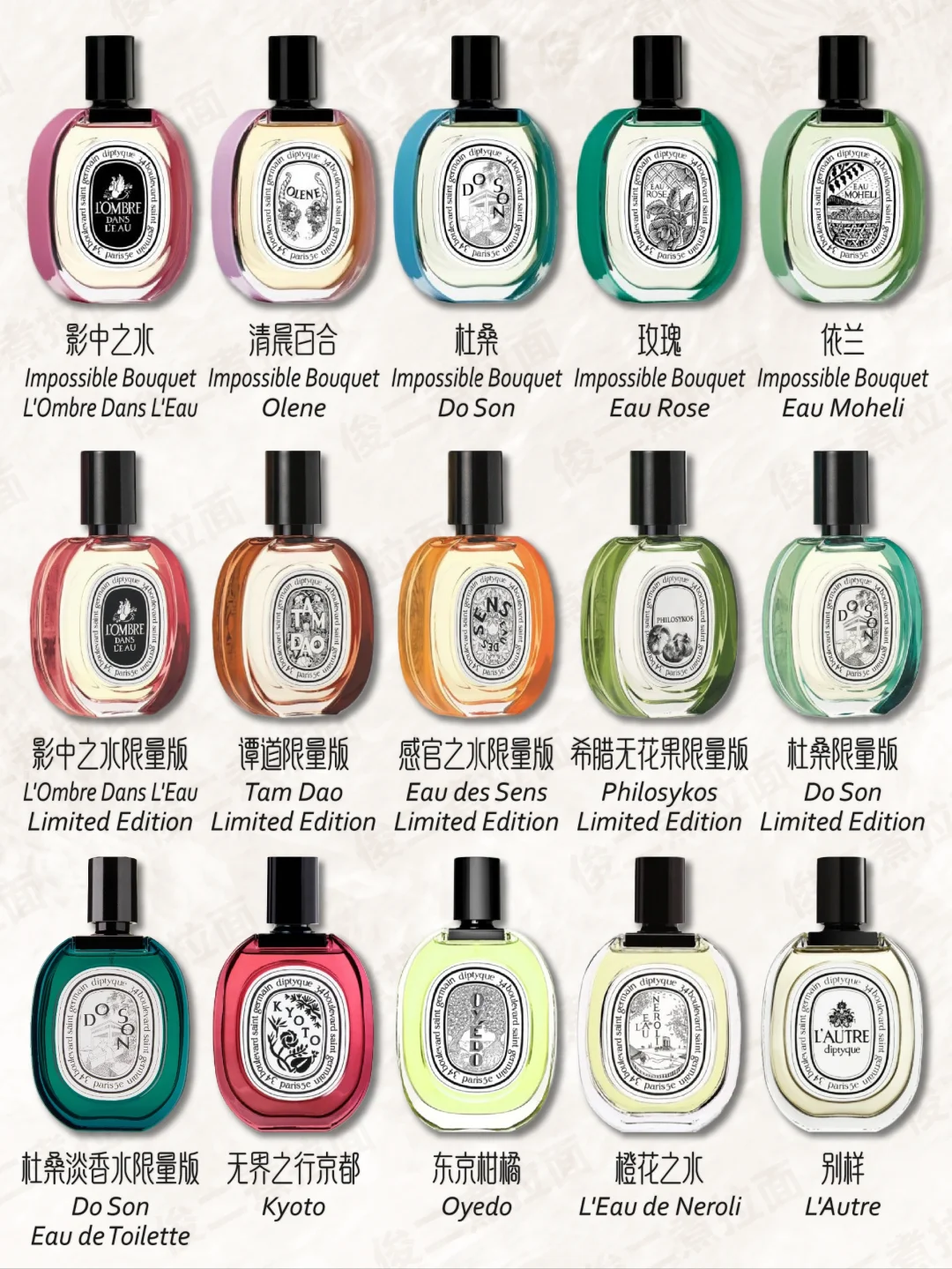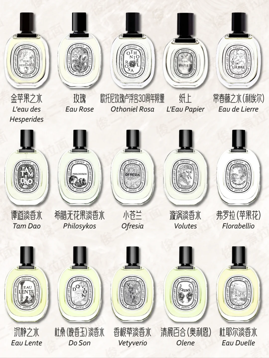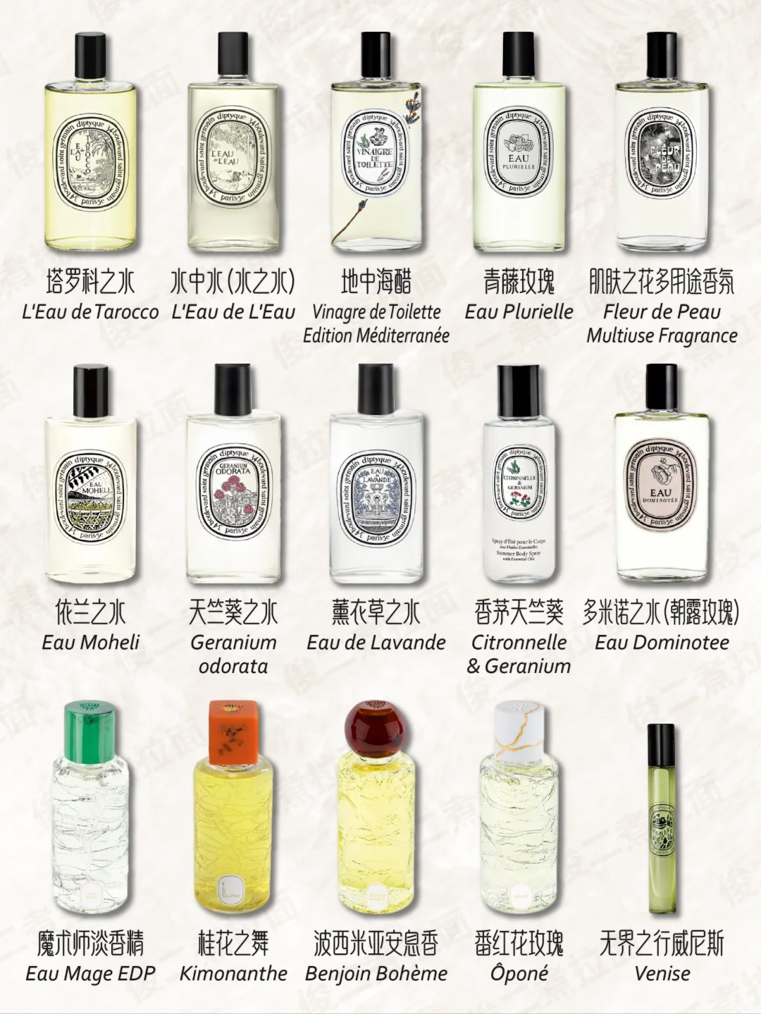 🚿1968年,Diptyque 生产了第一支花露水--l'EAU(水),2001年出品了身体及头发护理产品:沐浴露、泡泡浴和洗发水。