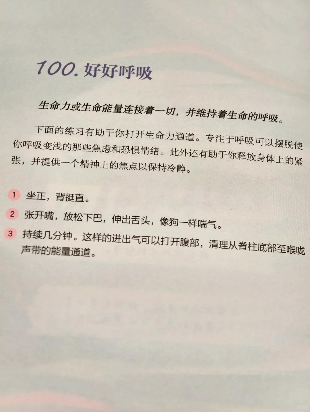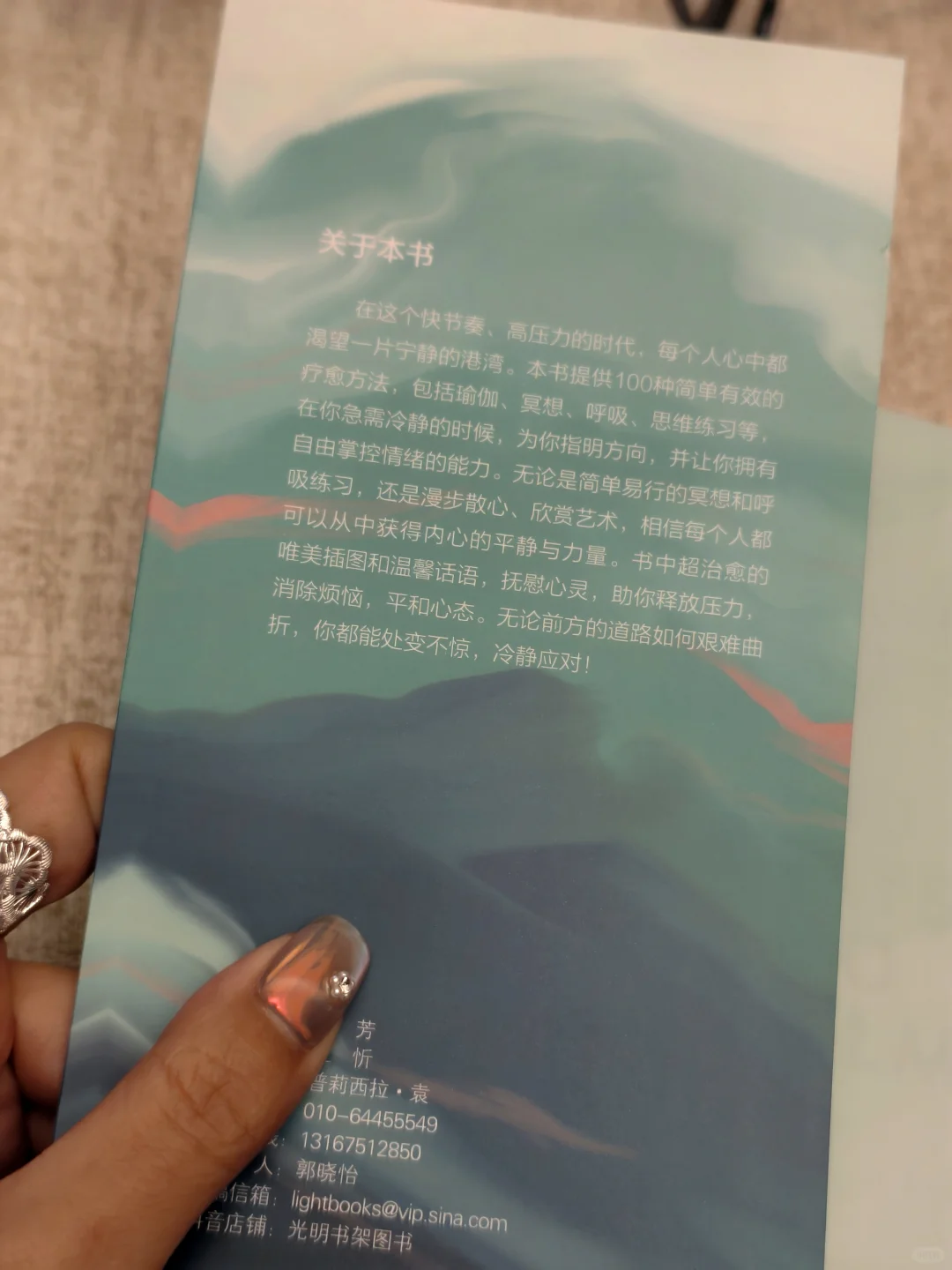 读到这本小书实在是给了我莫大的惊喜。作者贴心地为我们搜集提供了100种简单有效的疗愈方法,包括瑜伽、冥想、呼吸、思维练习等,仿佛一个超有效的“情绪急救大礼包”,每当我们情绪上头急需冷静的时候,它都能给我们吃下一颗定心丸,帮助我们拥有自由掌控情绪的能力。