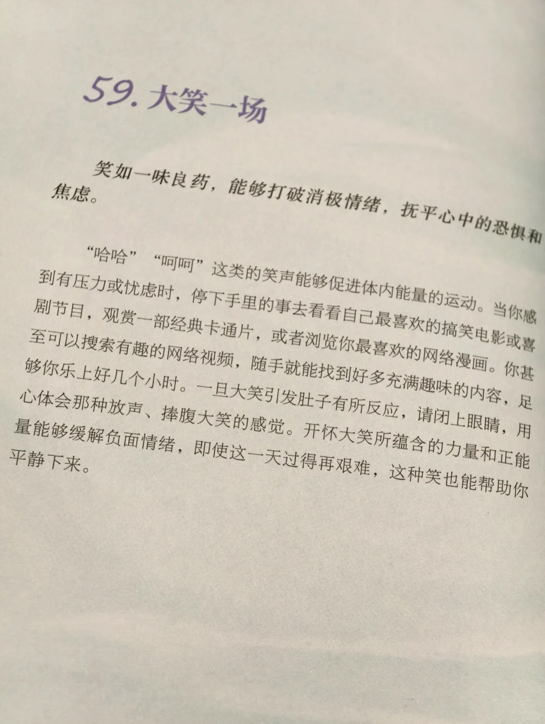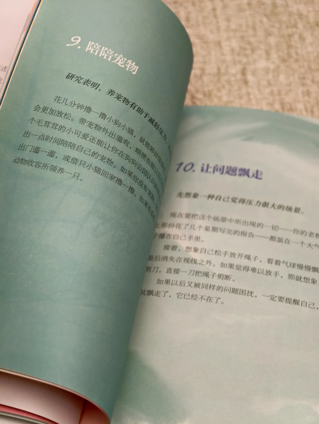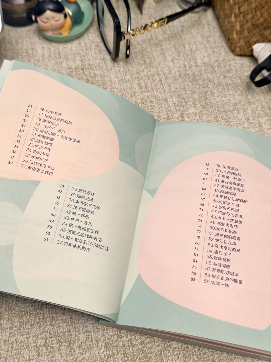 这本书很妙的地方就在于不管你翻到哪一页,都能get一个超实用的情绪调节妙招,而且书本大小很合适装在包里随身携带,随时随地都能掏出来“压压惊”,让自己保持一个愉悦松弛的状态。
