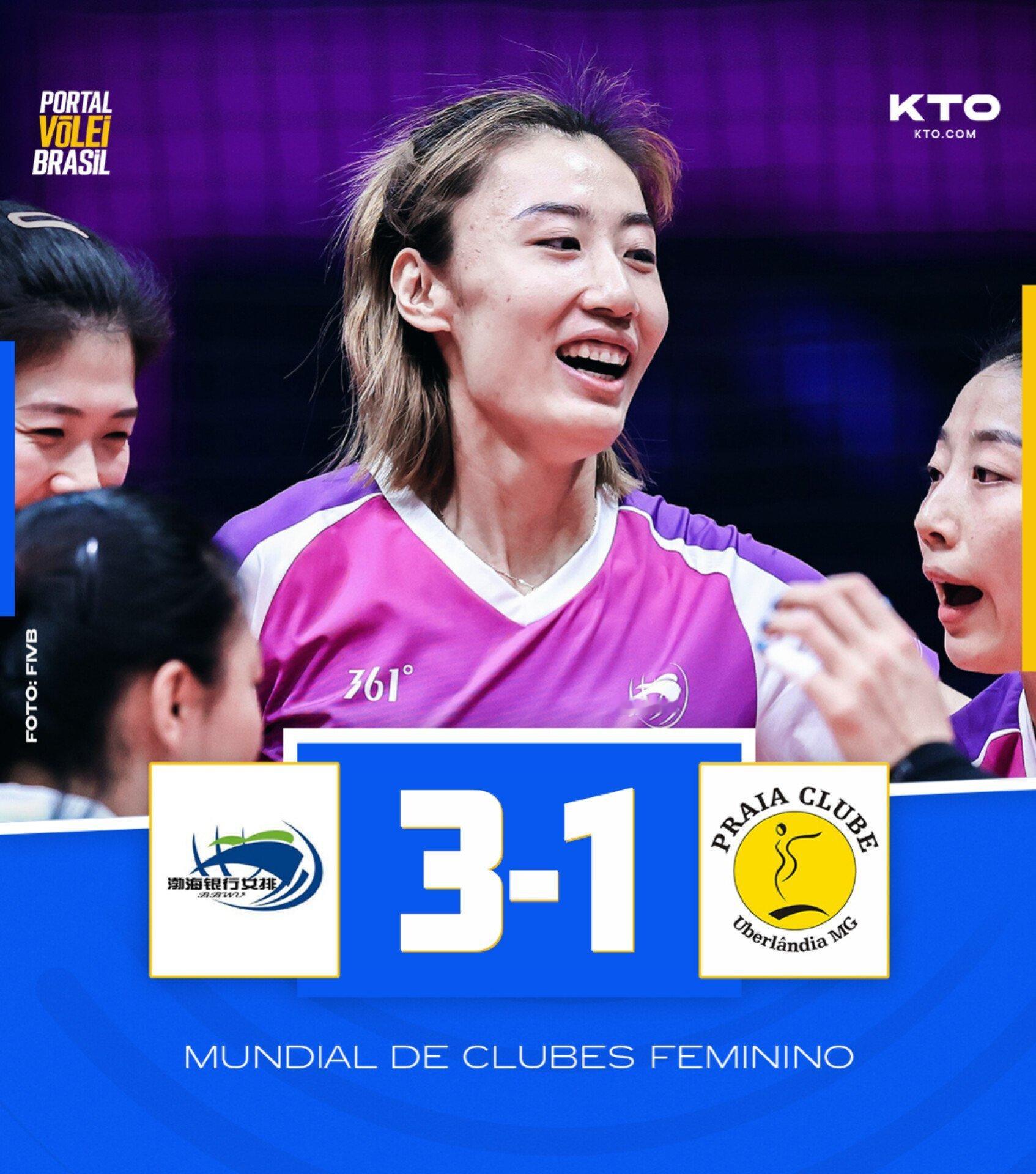 天津女排3-1击败巴西海滩女排,晋级世俱杯决赛!