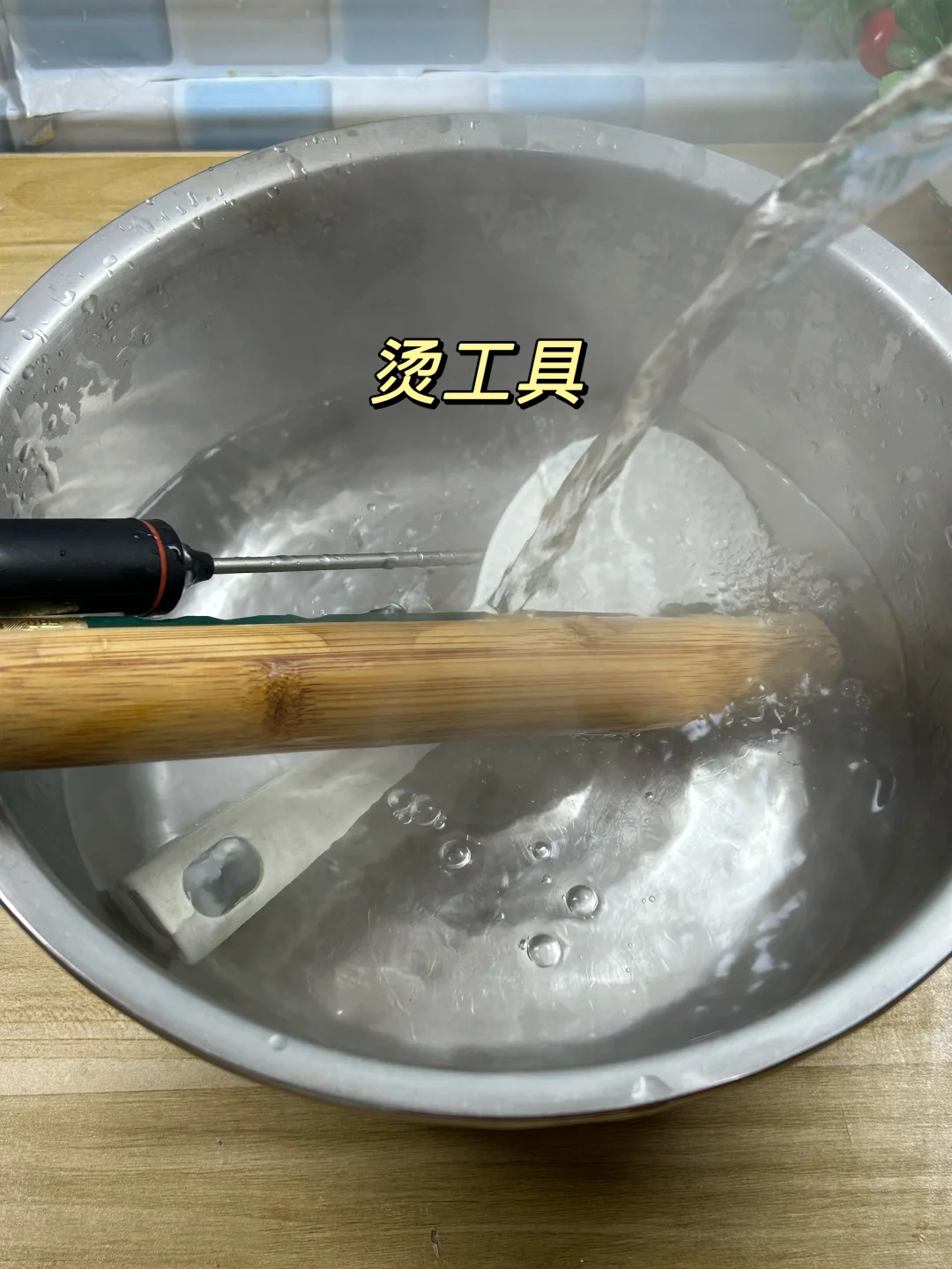 3. 蒸熟的糯米倒出晾凉至不烫手的温度,大约 30 度左右。