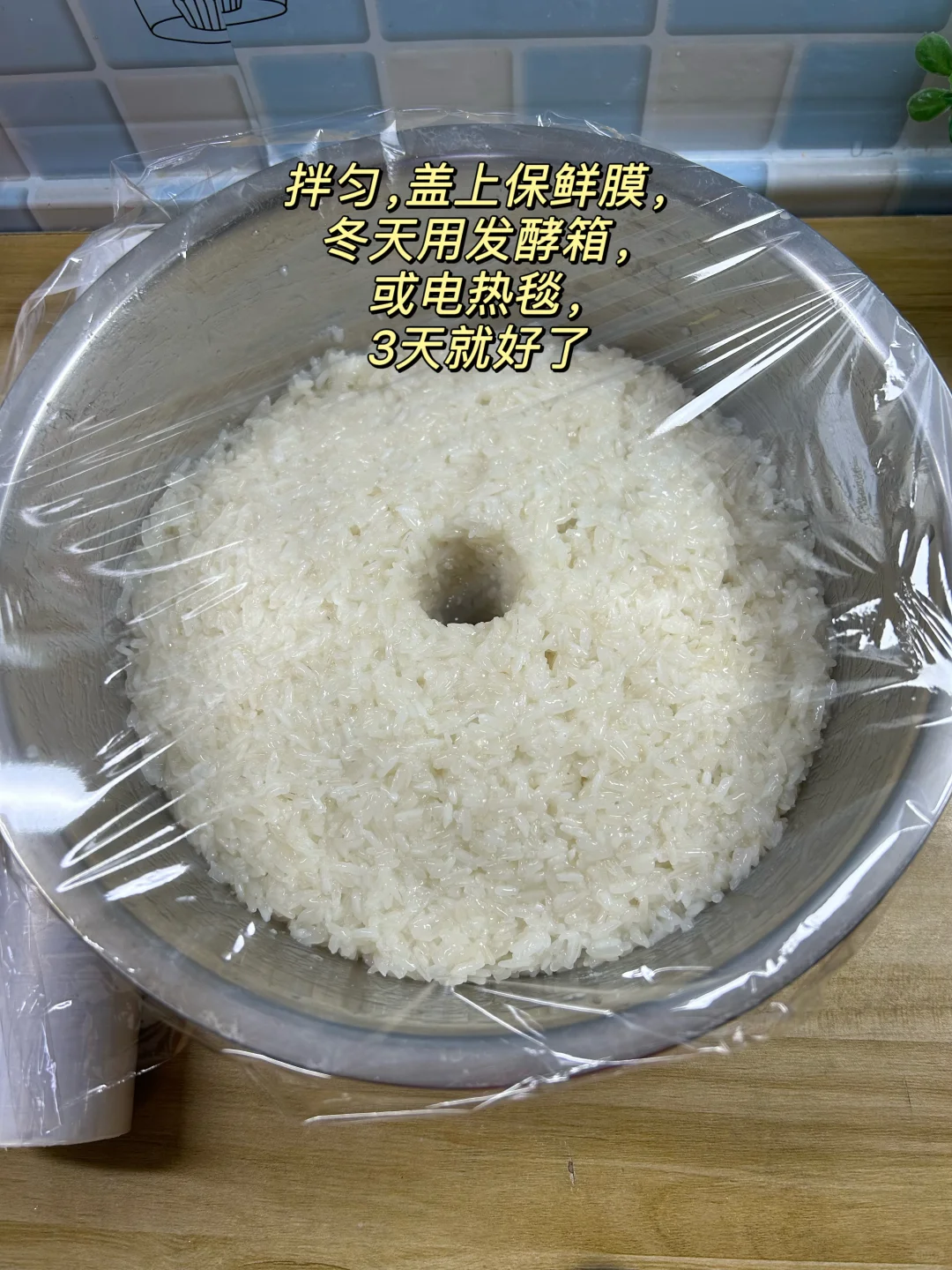 6. 密封容器,放在温暖的地方发酵,一般 2-3 天即可。发酵过程中可以观察小坑中是否有酒液渗出。