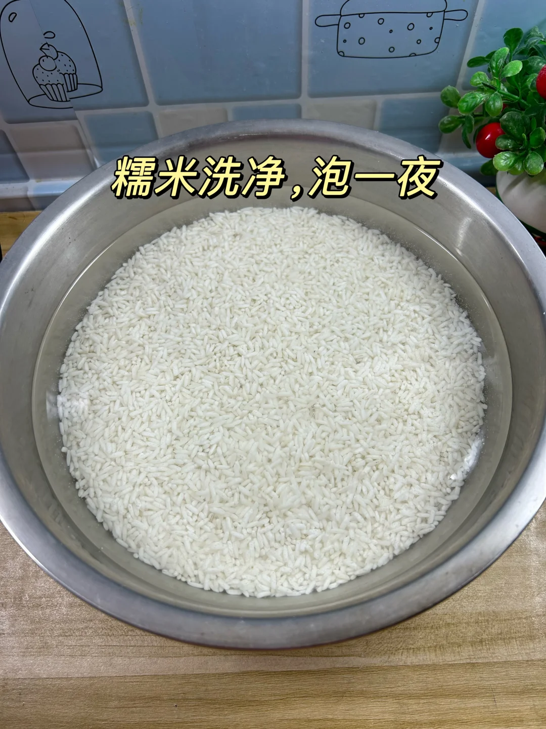 1. 准备适量糯米,洗净后浸泡数小时,直到可以用手轻松碾碎。