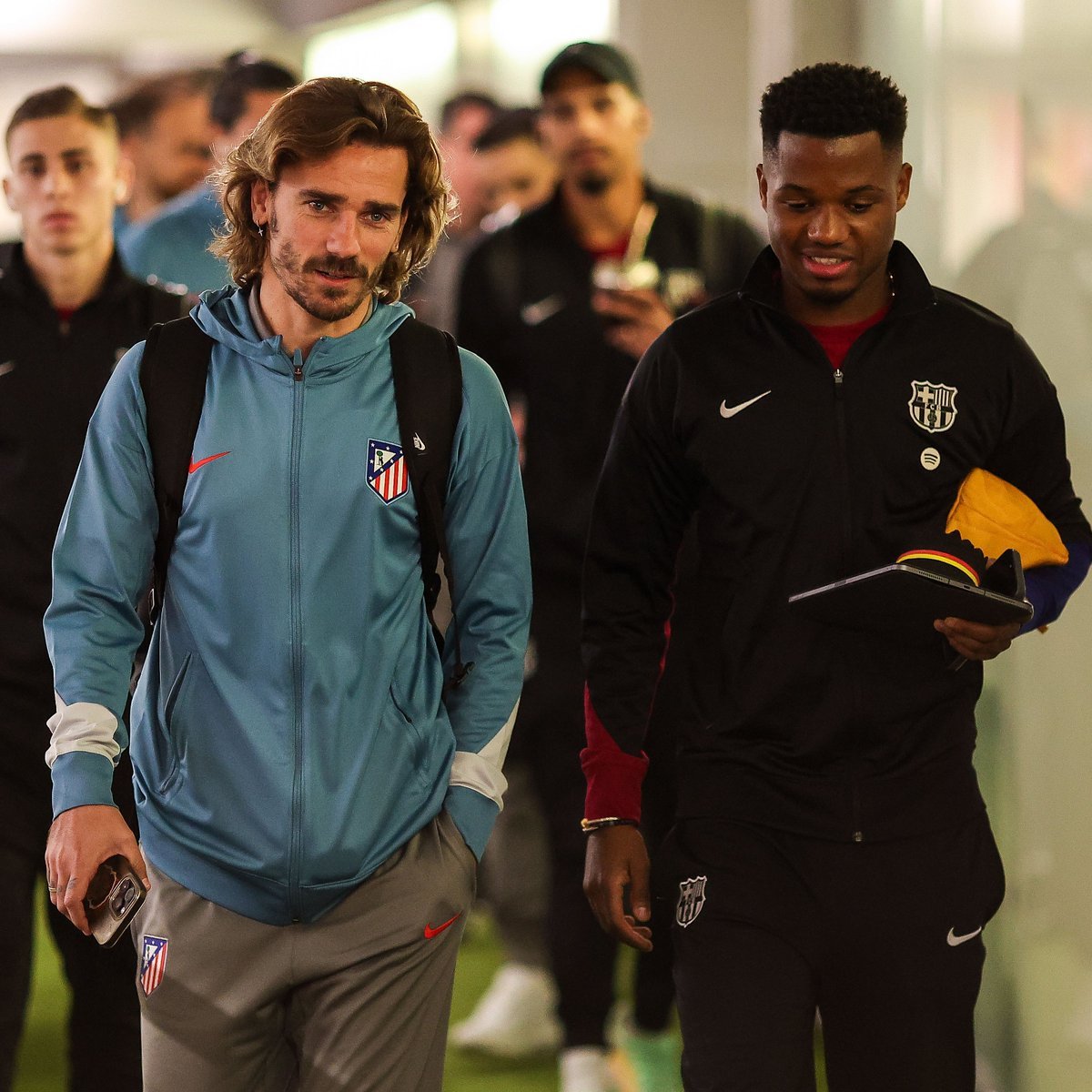 赛前的格里兹曼和安苏·法蒂,格子毕竟曾经是红蓝的一员,但是显然在马竞他更加如鱼得