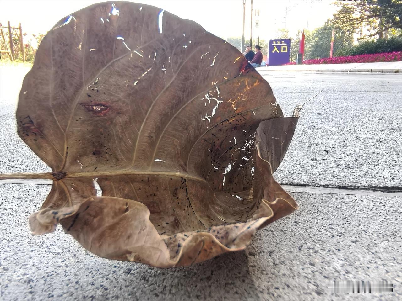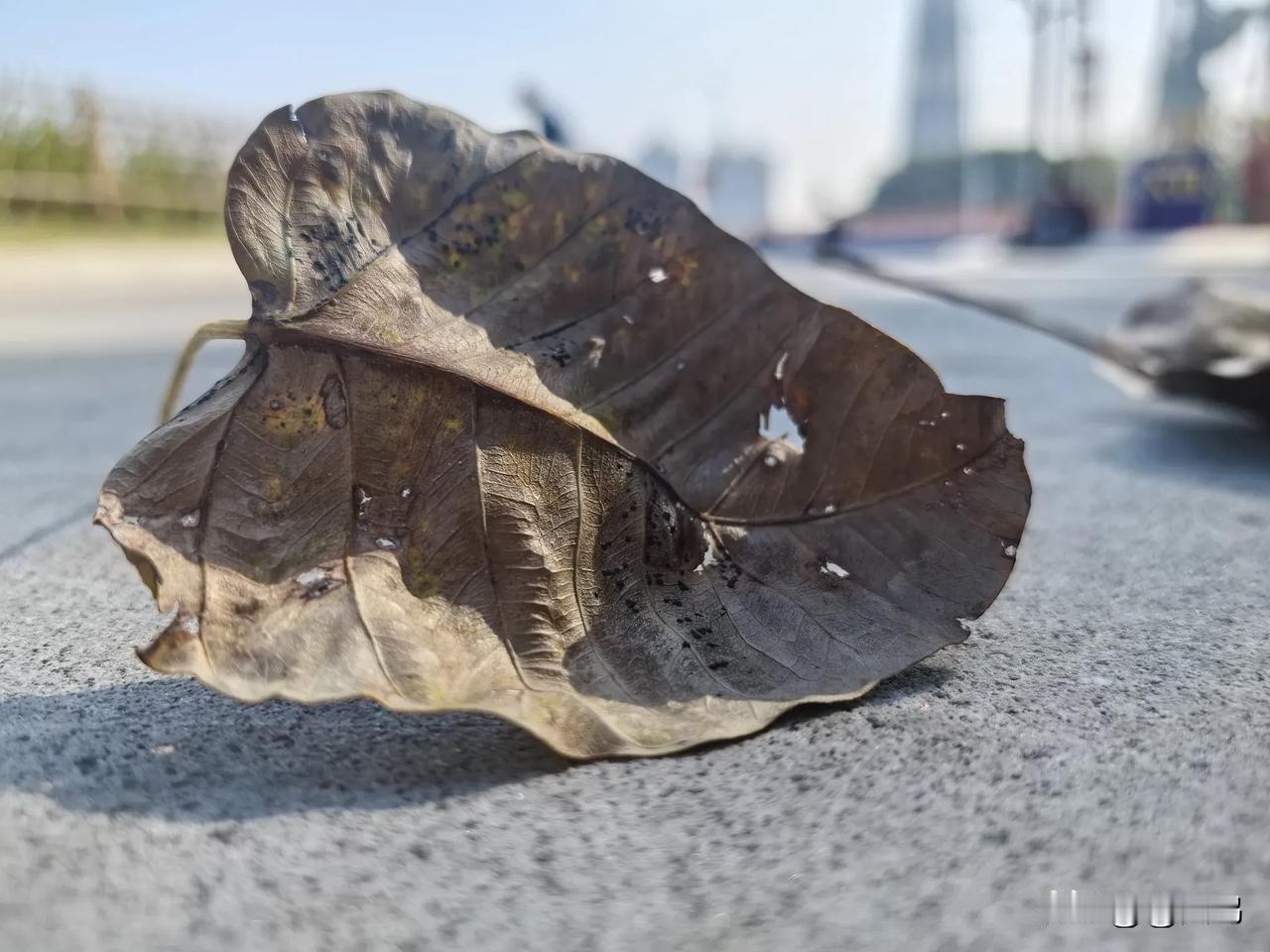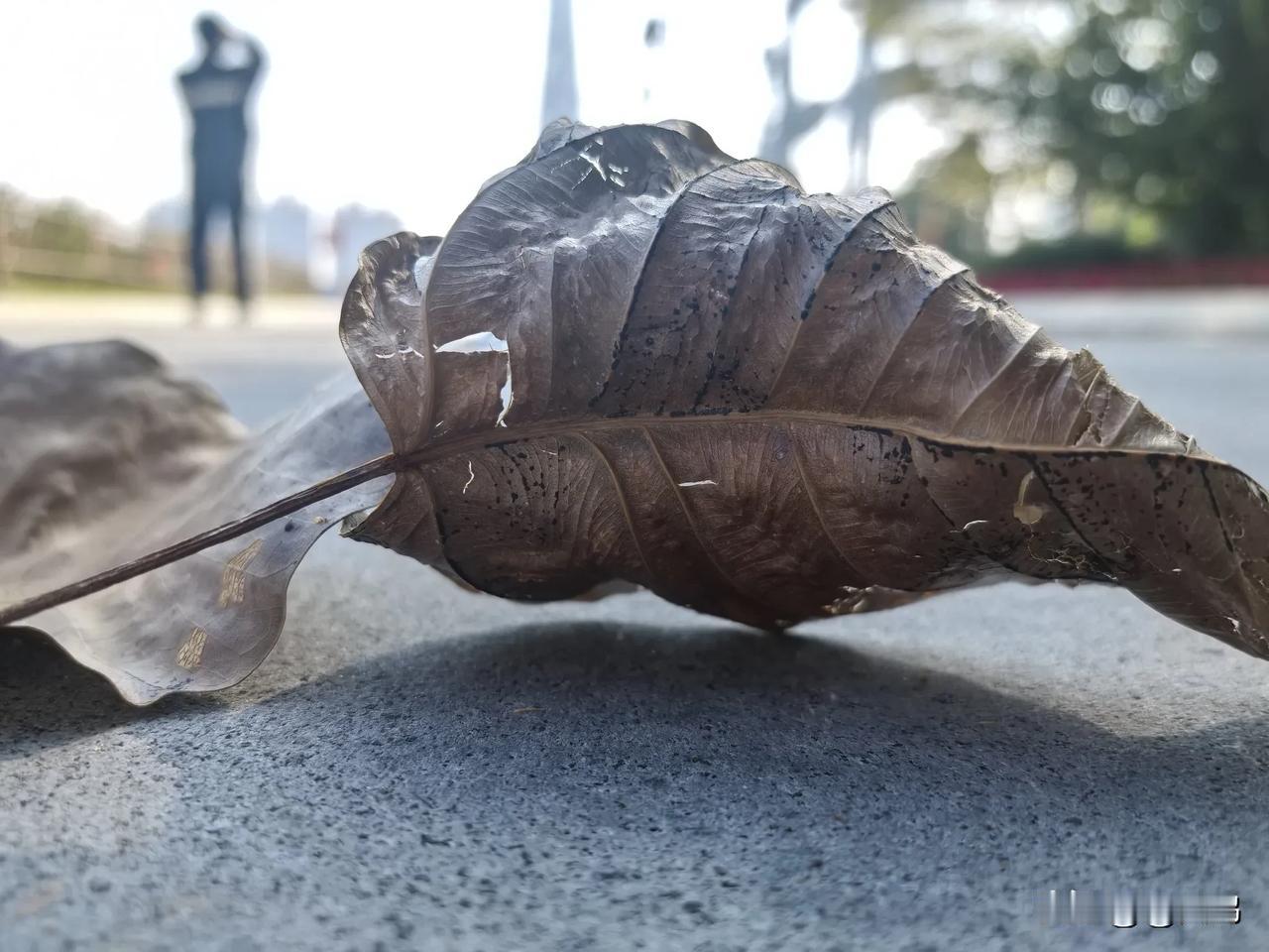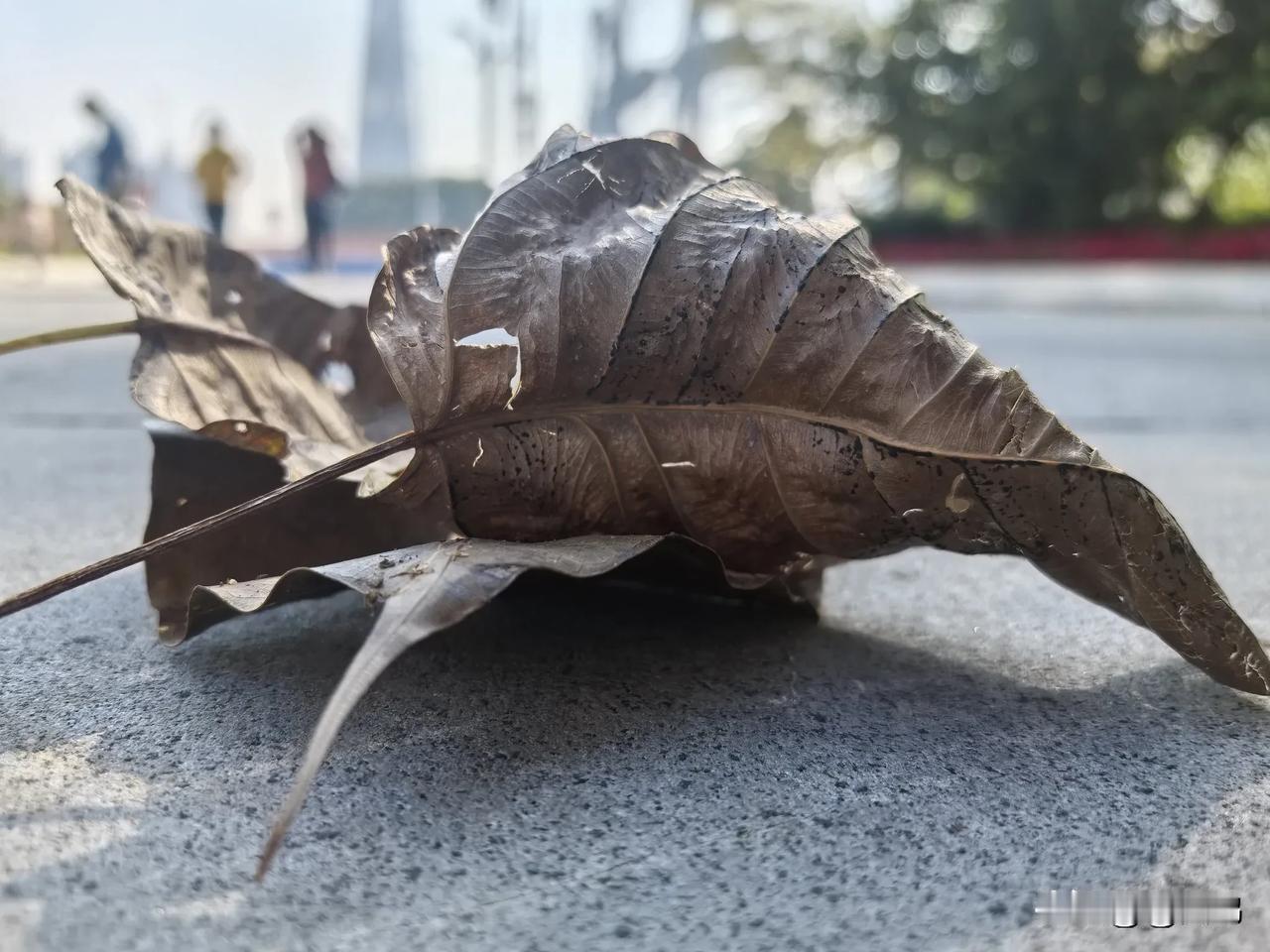 人生恰似枯萎的树叶。 初生时鲜嫩,满是希望与憧憬,在枝头迎着阳光舒展。 随着岁月流转,历经风雨吹打,渐渐失了翠绿,多了斑驳。 曾经的鲜活只能在回忆里找寻,终有一天,告别树枝,随风飘落,回归大地的怀抱。 它的一生短暂而又漫长,虽平凡却也独一无二,就如同我们在这世间的旅程,有过欢笑泪水,都在时光里留下独有的痕迹,悄然诉说着过往。 拍摄地点:广州花城广场 拍摄时间:2024.12.21