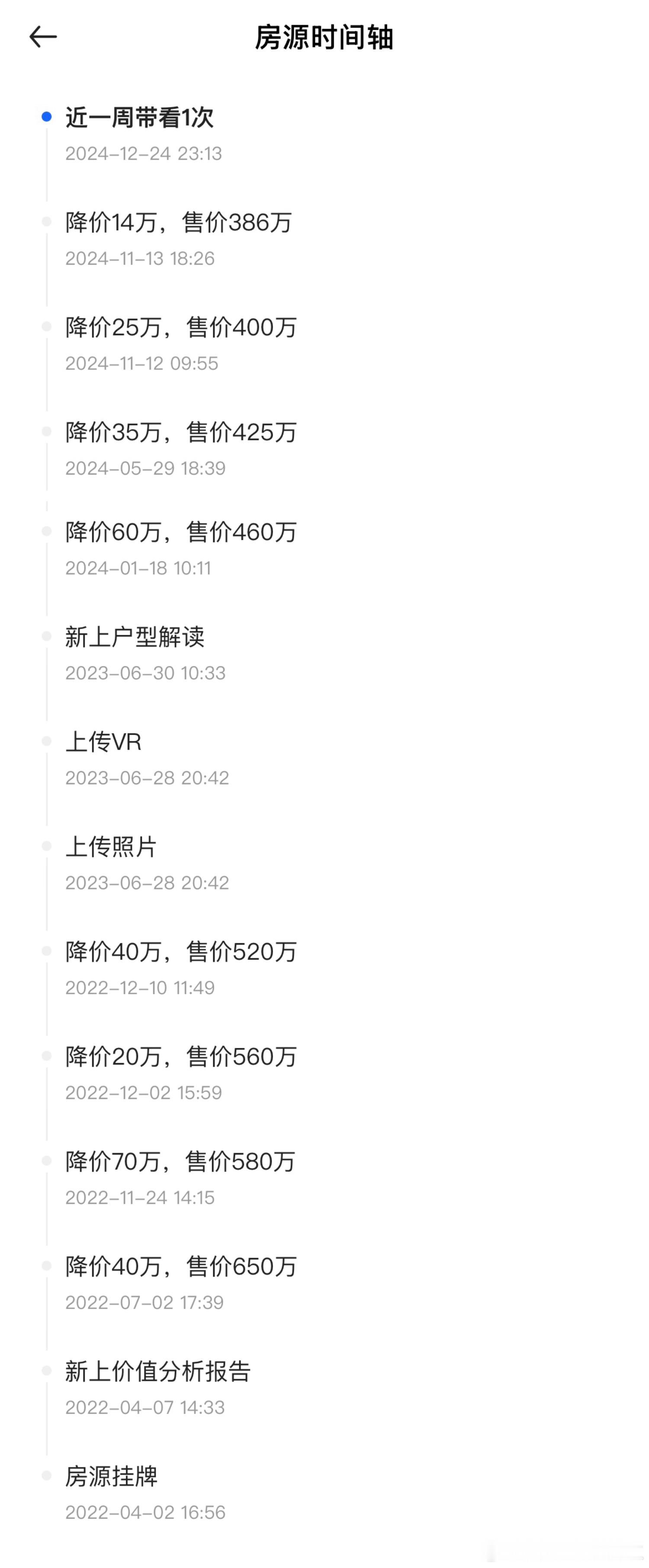 房子建筑面积86方,三室两厅,精装修,2022年4月挂牌出售,当时的挂牌价是690万,先后调价8次,目前报价386万,已经是该小区同户型里最低的一套。