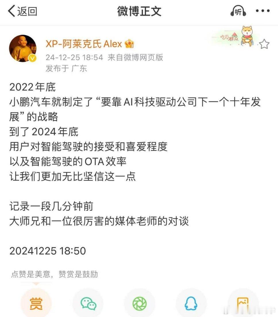 如果没记错的话,7个月前鹏鹏就宣布了自己是一个AI科技驱动下一个10年发展的公司。