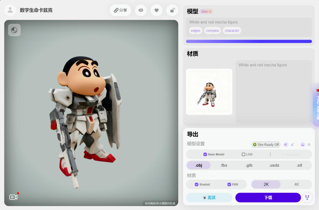 然后确认材质,你就能看到,蜡笔小新机甲冒出来了。