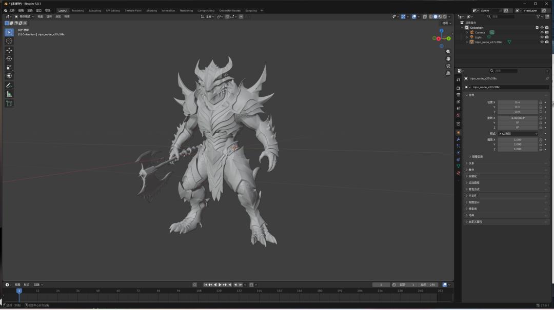 比如我随手可以去sketchfab上下载一个很爆的模型扔到了Blender里,它长这样。