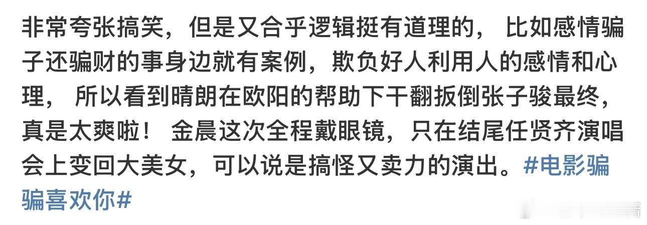 骗骗喜欢你 浓浓的疯感 瞧《“骗骗”喜欢你》那独特的“疯”,金晨等人在MV中的样子很有看点,反渣情节吸引人,跨年去影院乐一乐,迎接新年。