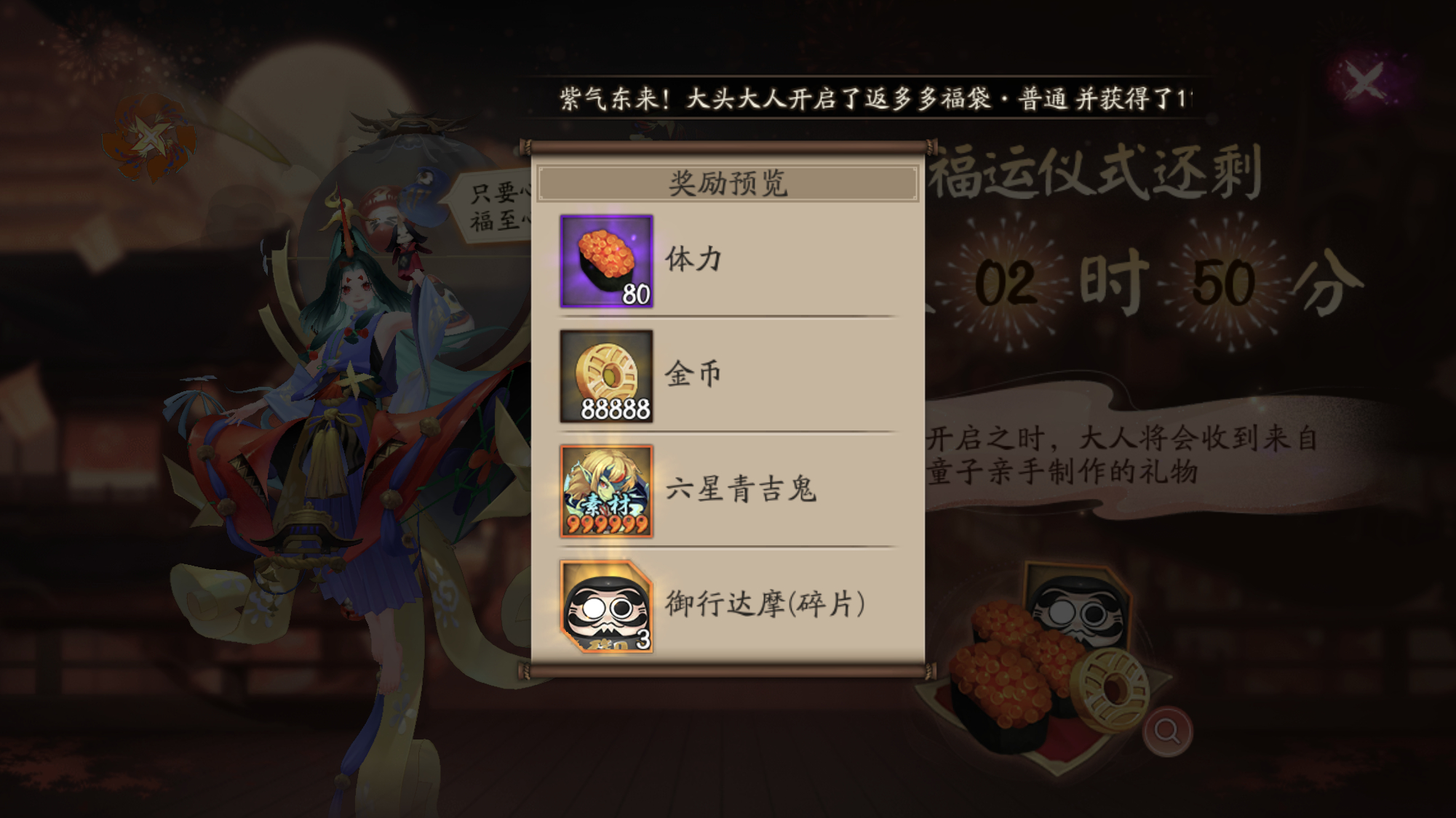 活动结束提醒 元旦小活动今晚结束~插画都拿到了吧,0点以后点右下角「福运仪式」可以获得三片黑碎、体力等奖励~[老师爱你]