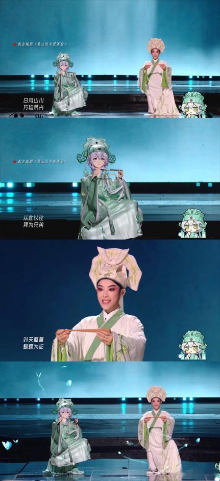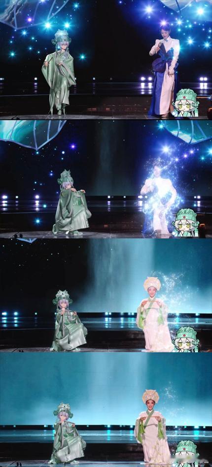 跨年最佳节目 陈丽君洛天依跪地结拜 陈丽君和洛天依的《戏游九州》舞台充满魅力。舞台上的各种特效和道具运用得当,“草桥结拜”的情节展现了传统文化底蕴,两人的合作自然流畅,为观众带来了不一样的跨年夜氛围。