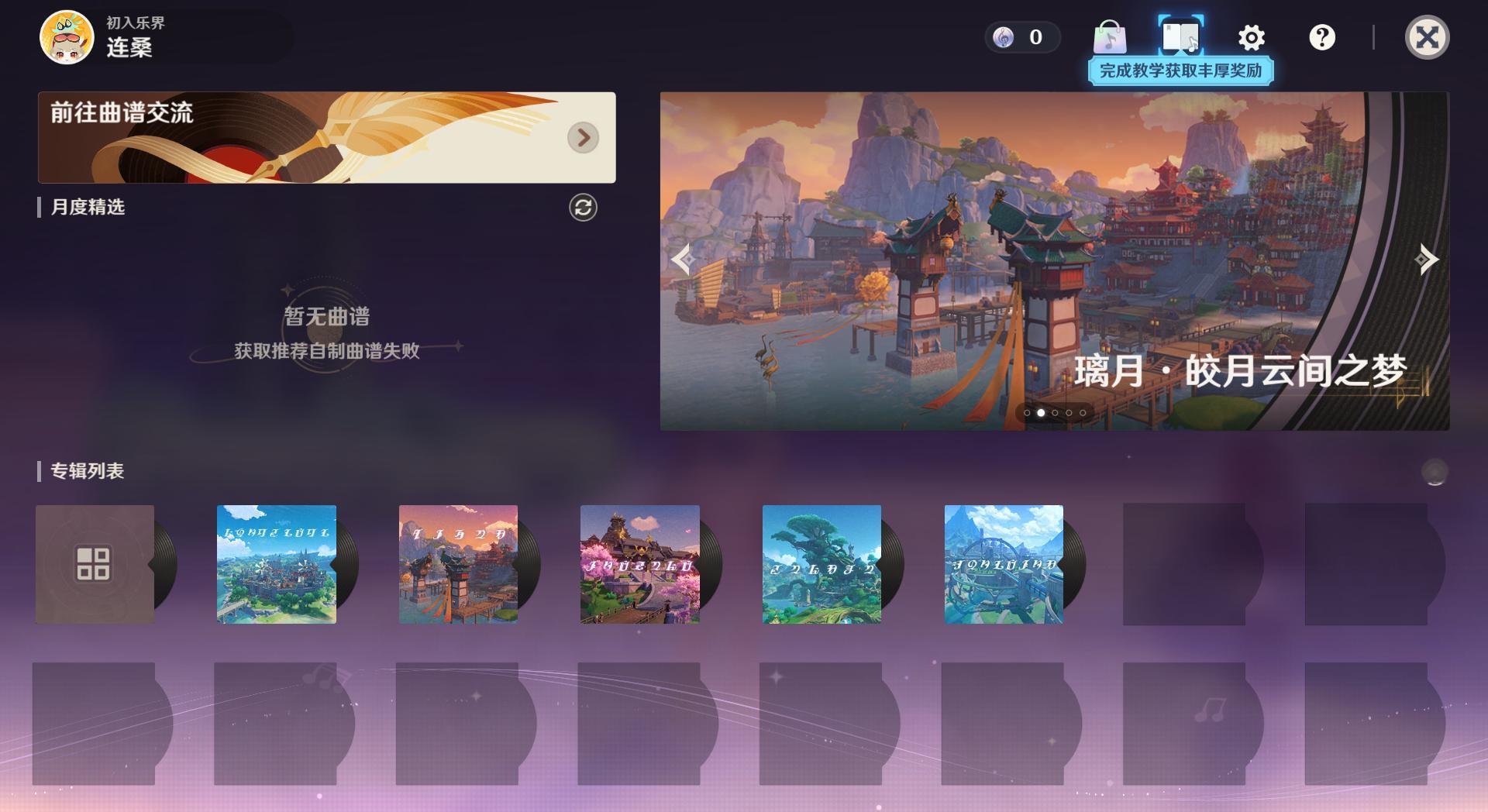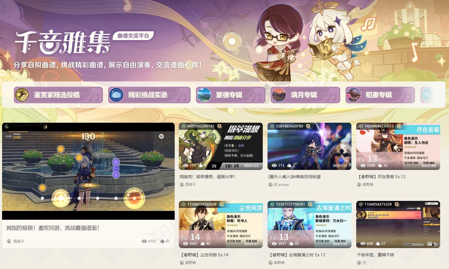 参加音乐挑战可获取原石奖励,还可以在交流平台与其他玩家分享你的曲谱。