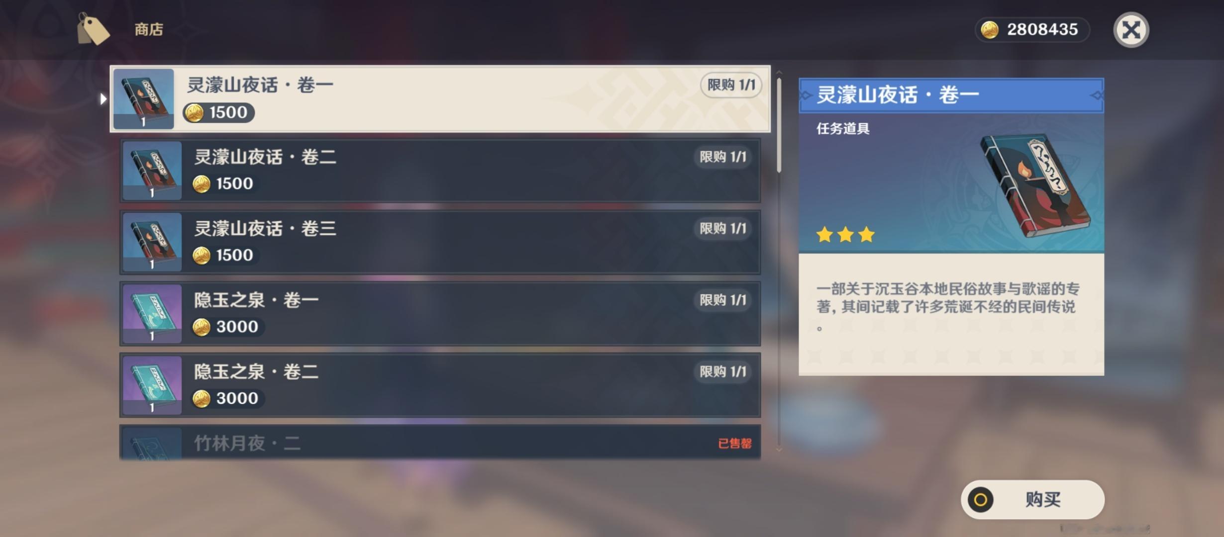 来到璃月-云来海图一位置找到纪芳购买书籍,购买所需:图三所示一共五本。