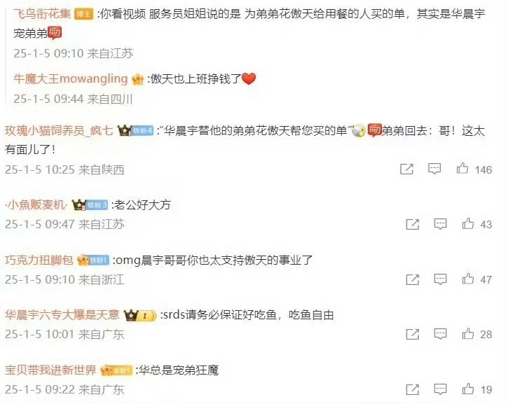 我嘞个霸道总裁照进现实了,华晨宇昨晚去北京合生汇的店里吃烤鱼,听说弟弟花傲天是这家店的推荐官,直接全场买单,华总霸气啊~我和你们这些偶遇华晨宇还被买单的拼了!!