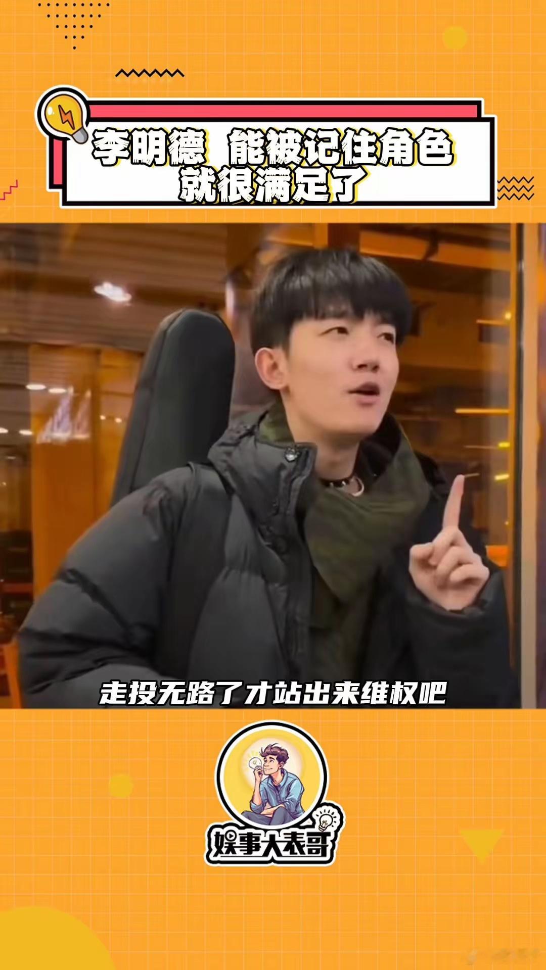 李明德是真的走投无路了才站出来维权。北电毕业科班出身,《如此可爱的我们》谈宋火出圈,结果遇上公司拖欠三年工资不给新项目,被迫曝光无良经纪公司拍摄的《少年巡抚》,拍到一半投资方跑路。参加《无限超越版》,跑龙套被灌水到吐,结果没几个镜头。
