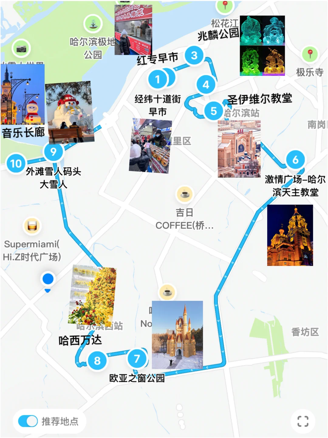 经纬十道街早市-红专街早市-哈尔滨市兆麟公园-索菲亚大教堂-圣伊维尔教堂-士课街天主教堂-欧亚之窗公园-哈西万达冰封玫瑰-音乐长廊大雪人