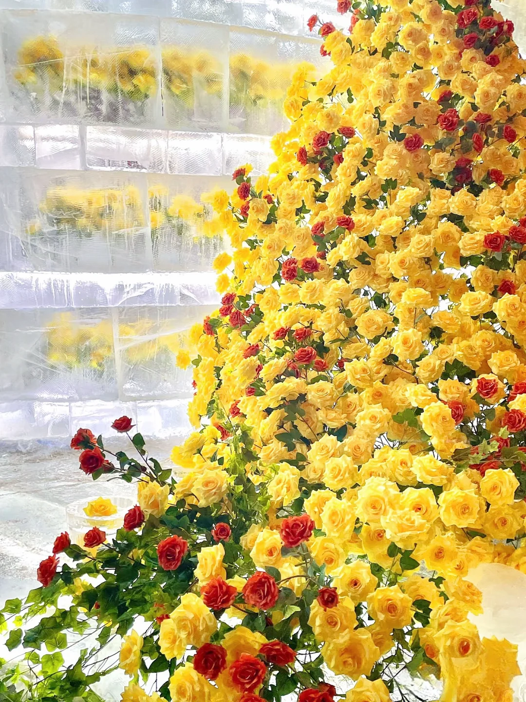 1号门对面爆🔥哈尔滨的冰封玫瑰墙是刘亦菲“同款”黄玫瑰,不要错过