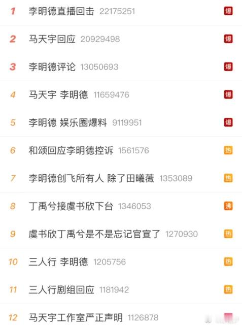 1. 李明德控诉剧组: 李明德在星光大赏活动的当晚,一个人霸占所有高位热搜热度不断。最初的原因就是在控诉《三人行》剧组区别对待。