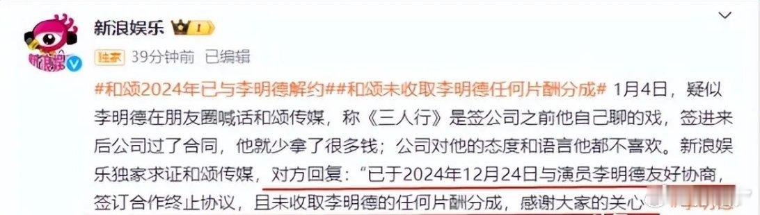 李明德与《三人行》剧组的纠纷持续发酵,剧组曝光与李明德的解约合同显示,合同解除通知书赏明明白白写着,剧组就预付给他的第一期片酬就有10万。而他此前还主演过《锦月如歌》、 《如此可爱的我们》等剧,越来越多网友质疑他卡里只有180的真实性。