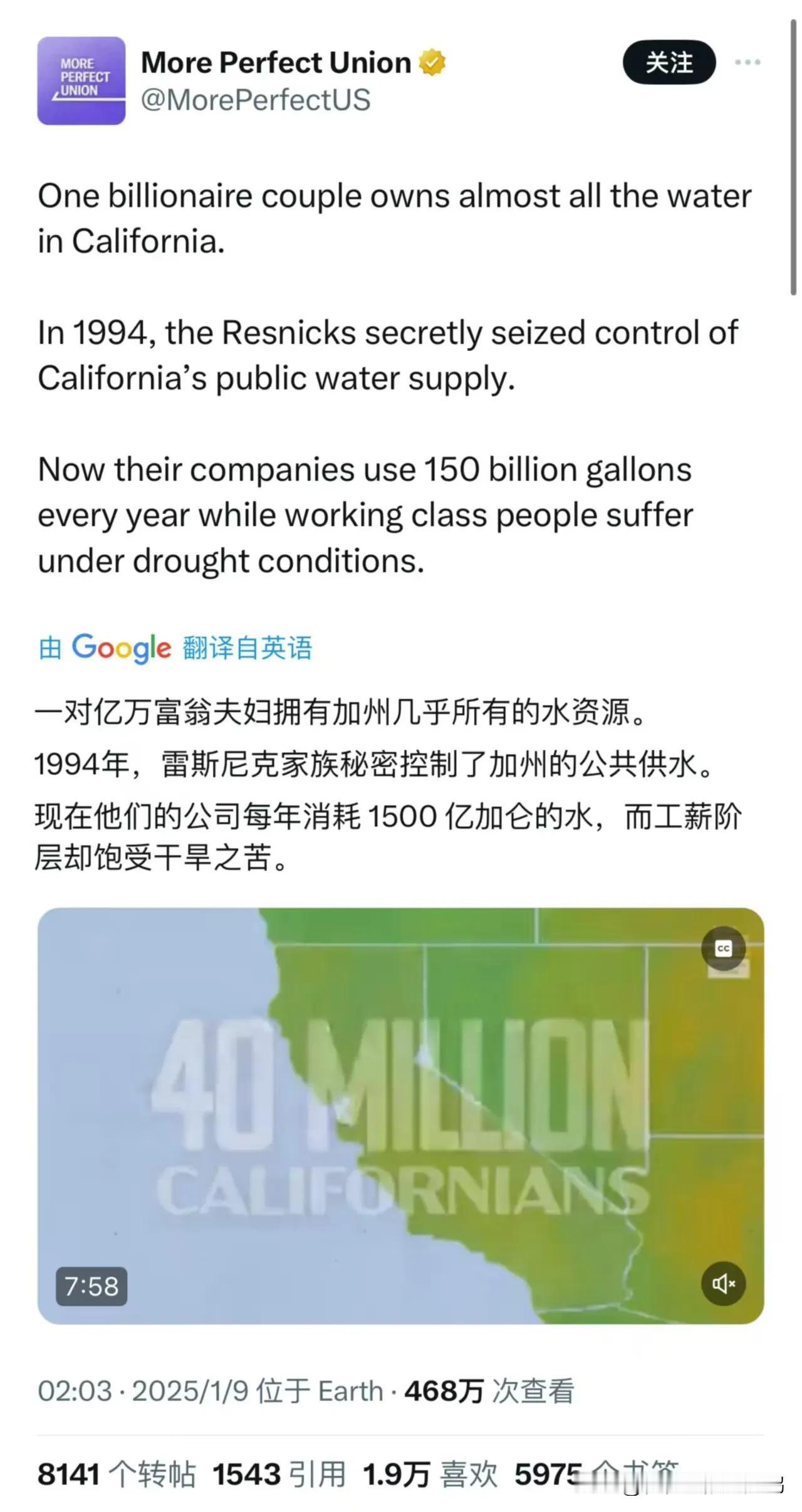 #6天35起加州山火为何这么多# 这个世界是唯物的,事态发展总是有因果的。 一对亿万富翁夫妇拥有加州几乎所有的水资源。 1994年,雷斯尼克家族秘密控制了加州的公共供水。现在他们的公司每年消耗1500亿加仑的水,而工薪阶层却饱受干旱之苦。 这话可不是俺胡诌的,是美国人自己爆料的。 出于好奇心查了一下,这对亿万富翁夫妇是美国最有钱的“农民",种开心果的。他们种植的开心果将近33%的份额出口给了最大的进口国,对就是那个你懂的国家——东大。 没水救火,水都拿去种开心果了,这就是资本主义,不爽哈耶克来世不要再做美国人了。 对了那个夫妇是富豪老钱,种族当然是你懂的,被公知们多年来宣传世界上“最聪明的那个”。 这个牌子万多福他们家的,笑死了买几包开心果火更旺是吧,太伟大了哈耶克。 买包万多福开心果支持下哈耶克,太伟大了!